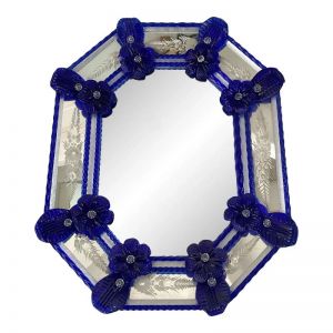 Barovier-Style Venetian Murano Glass Wall Mirror with “Torciglione” Torchon Design
