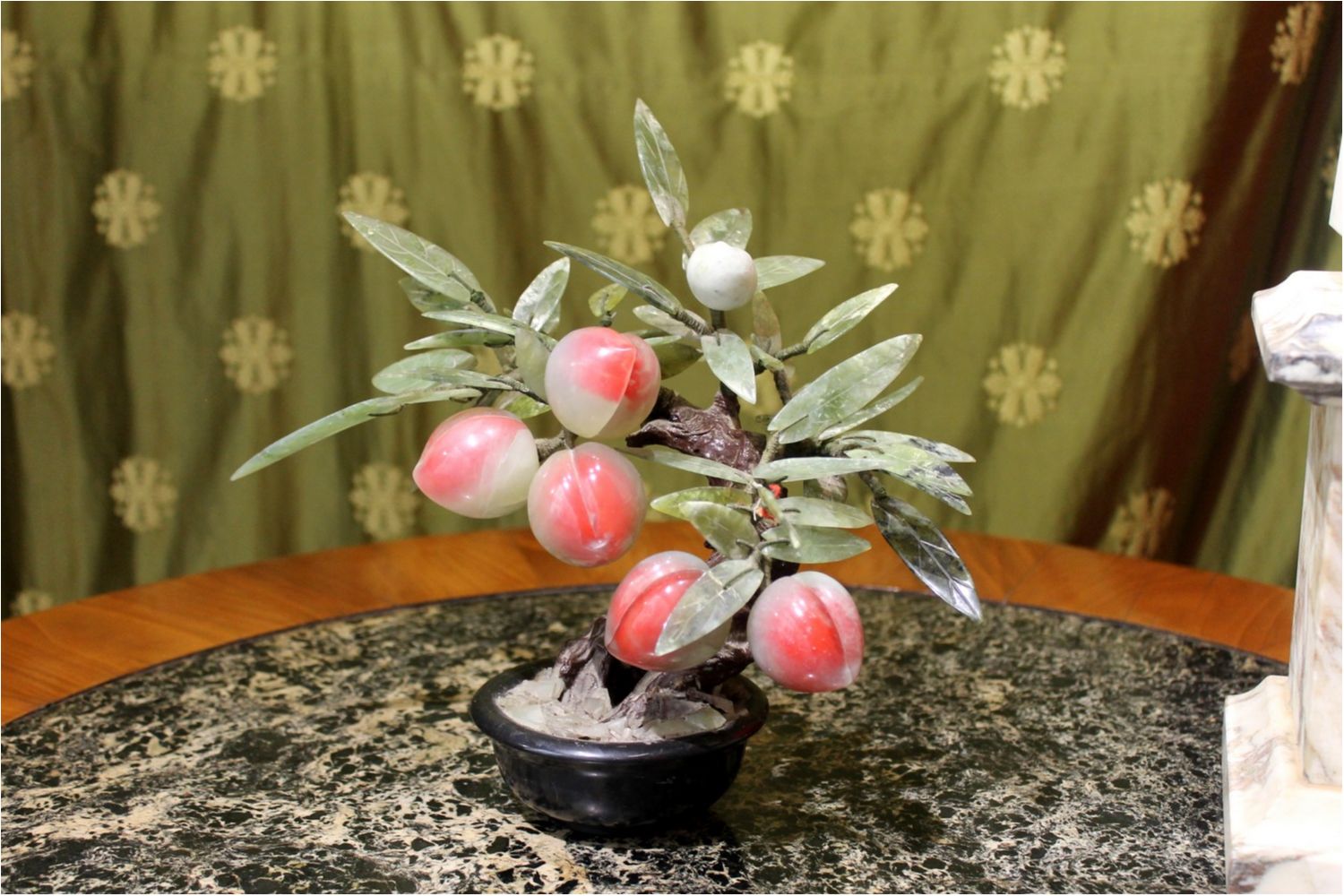 Chinese Mid-Century Modern Hard Stones and Jade Fortune Tree in Marble Vase