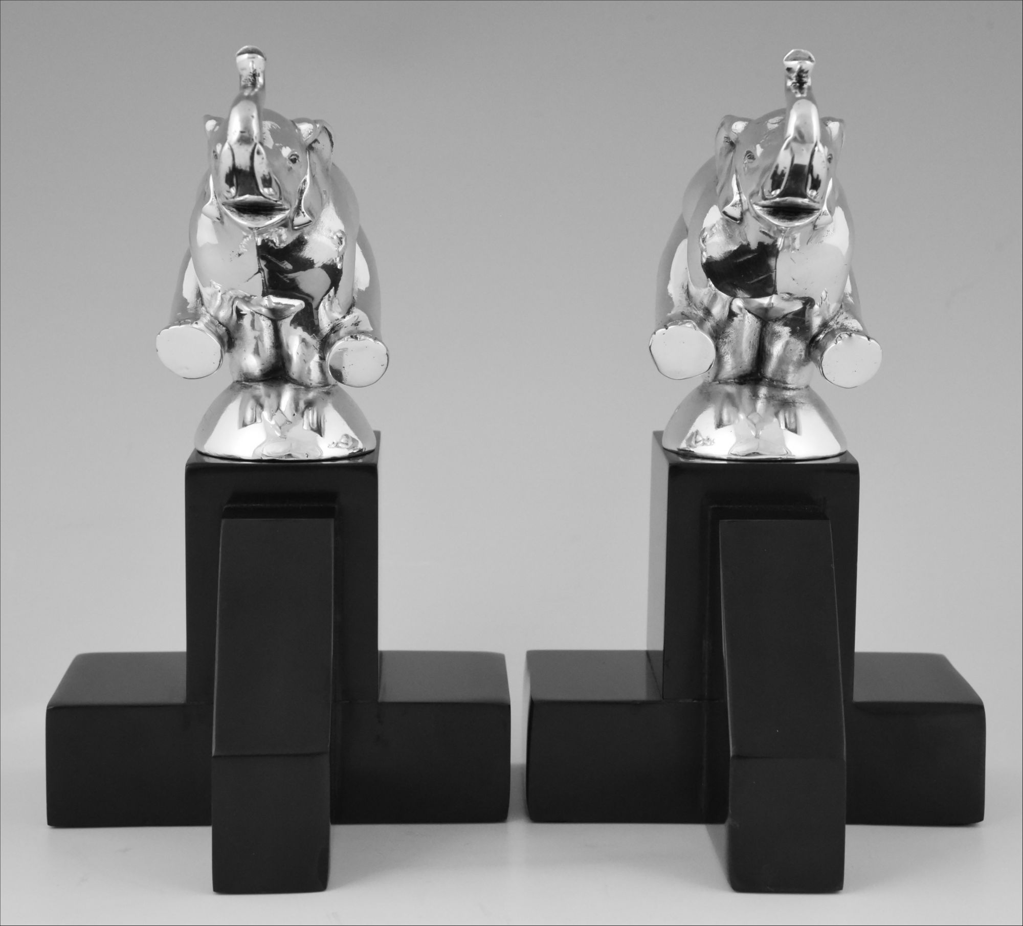 Marcel Pley Art Deco silvered bronze elephant bookendson marble base France 1936