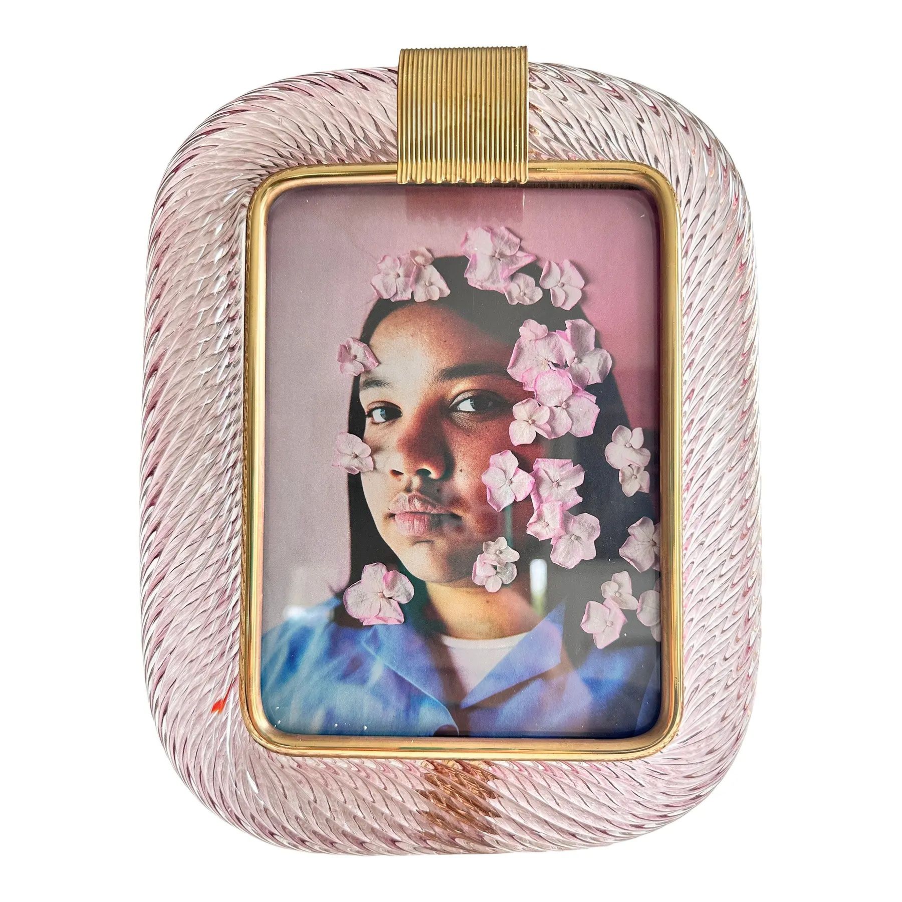 Mid-Century Modern Style Ametista “Torchon” Murano Glass Picture Frame and Unaquered Brass