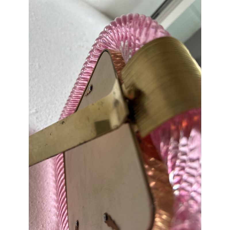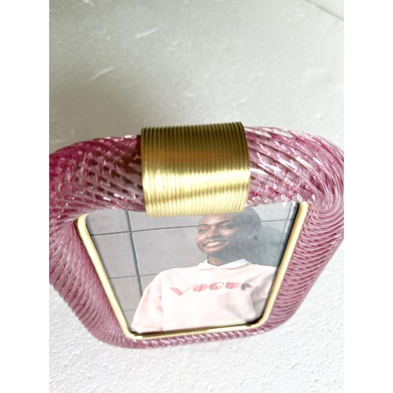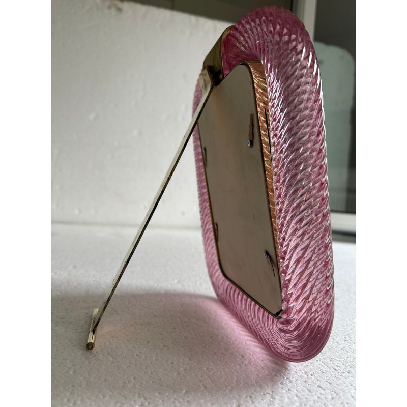 Mid-Century Modern Style Pink "Torchon" Murano Glass Small Picture Frame and Brass in Barovier Style