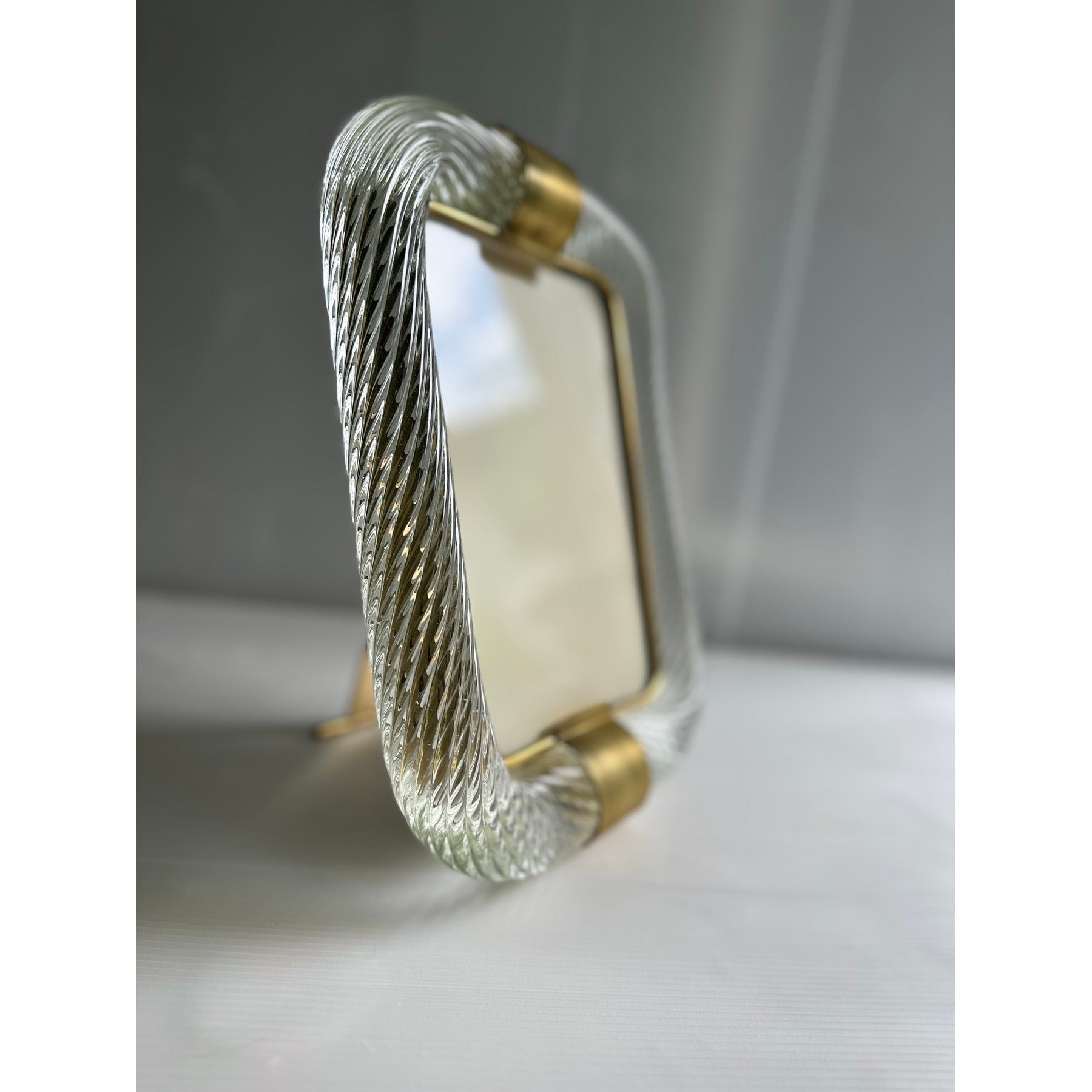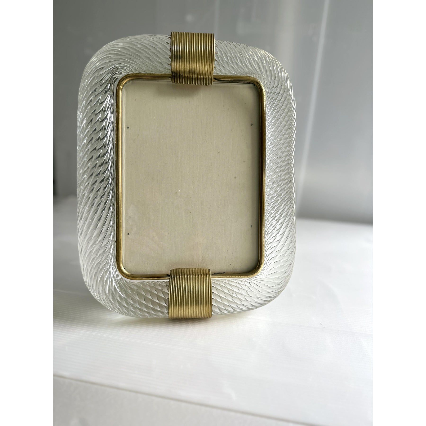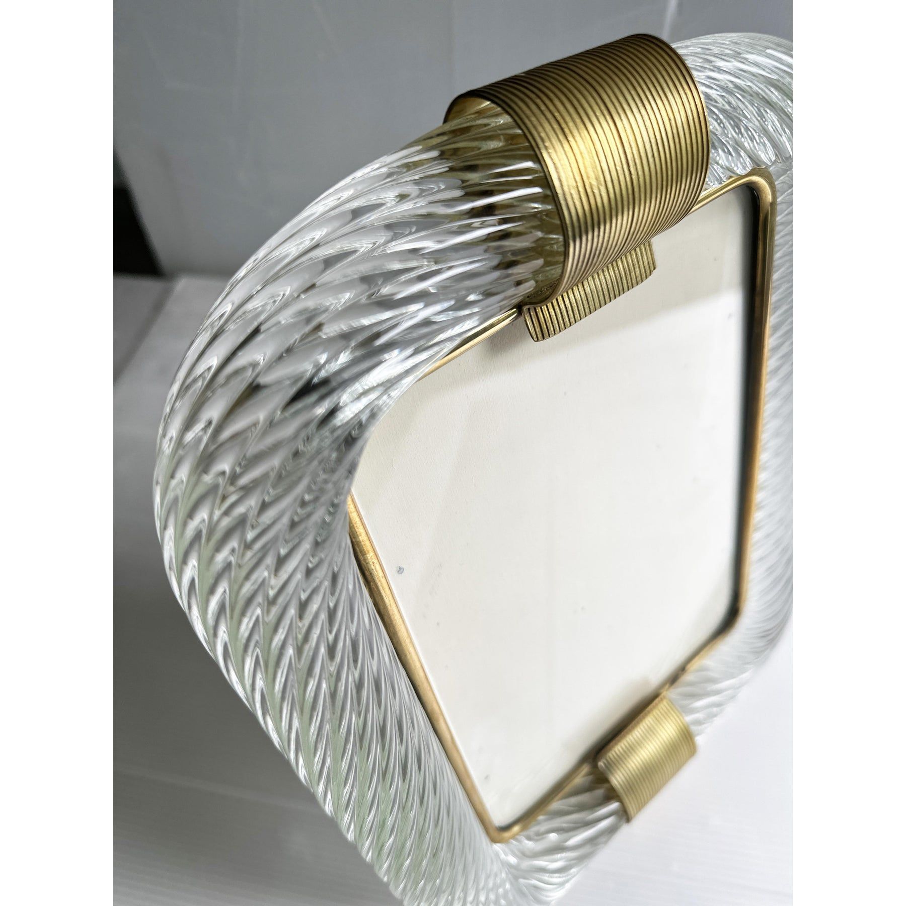 Mid-Century Modern Style "Torchon" Murano Glass Picture Frame and Unaquered Brass in Barovier Style