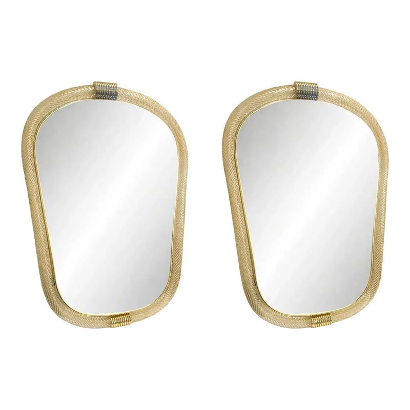 Pair of Italian Murano Glass Wall Mirrors in Gold Leaf “Torciglione” Venetian Design