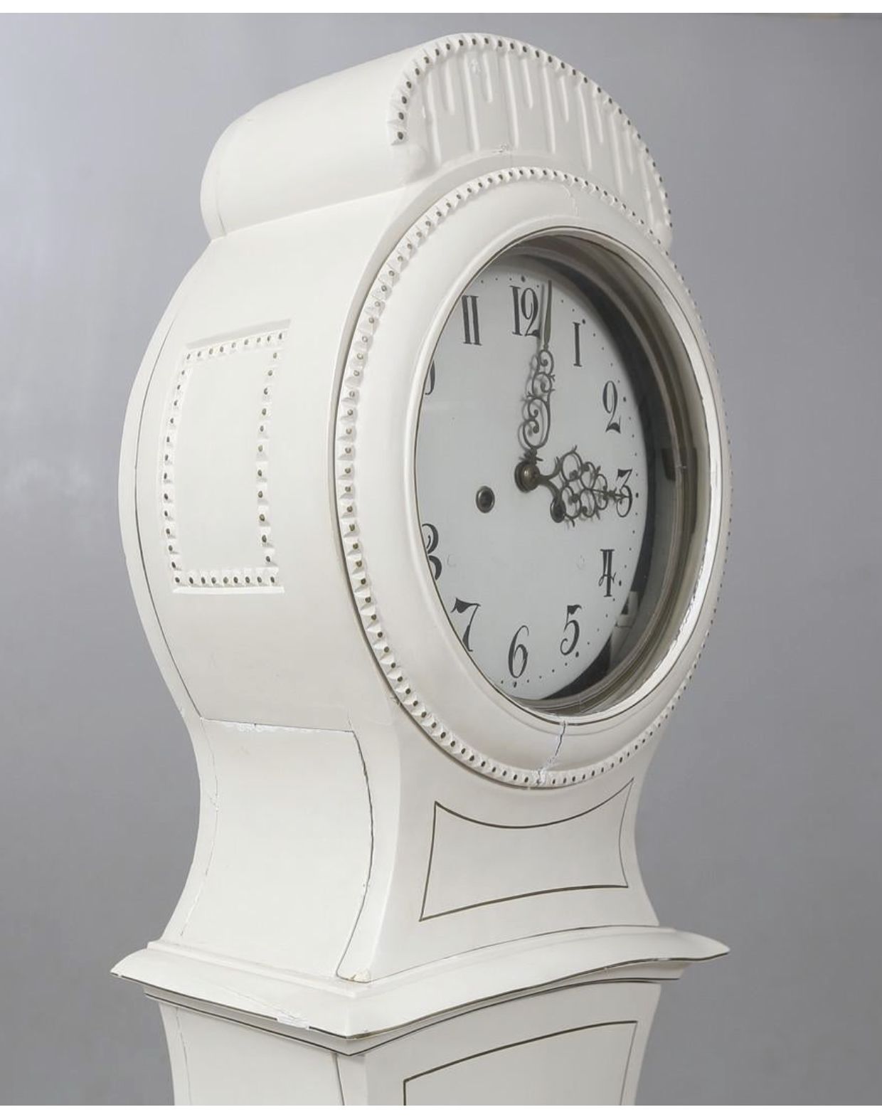 Swedish Antique Mora Clock White Paint 1800s 203cm Crowned