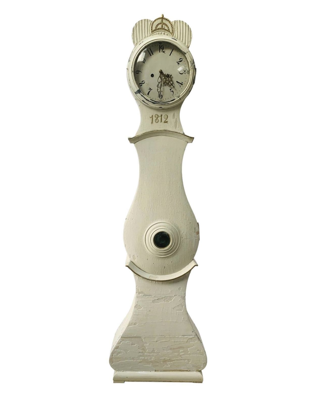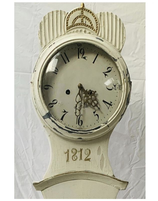 Swedish White Mora Clock 1812 Antique Carved Fryksdal Grandfather