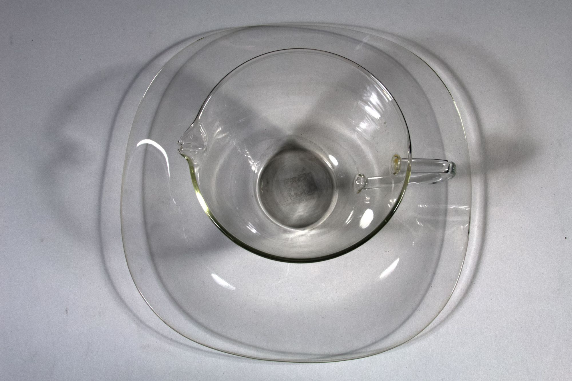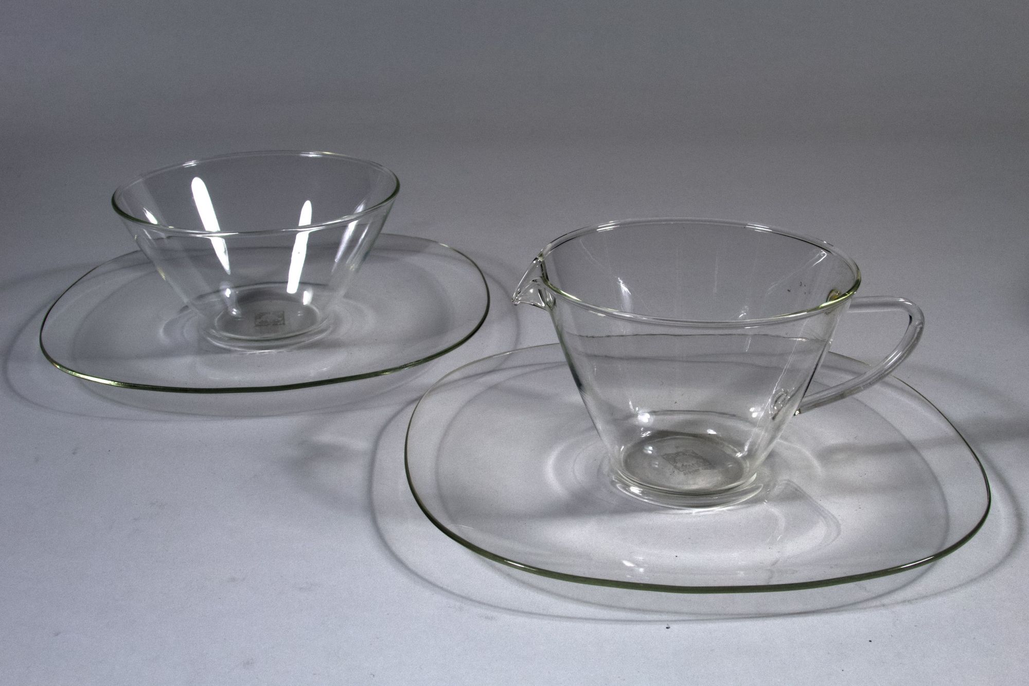 All cups and plates marked with: Jenaer Glas, a circle in a Pentagon, Schott & Gen, Mainz.
