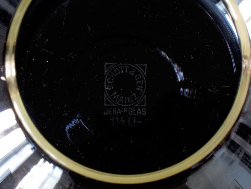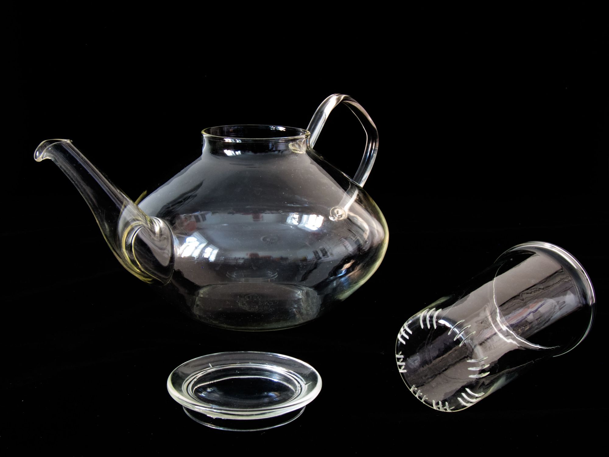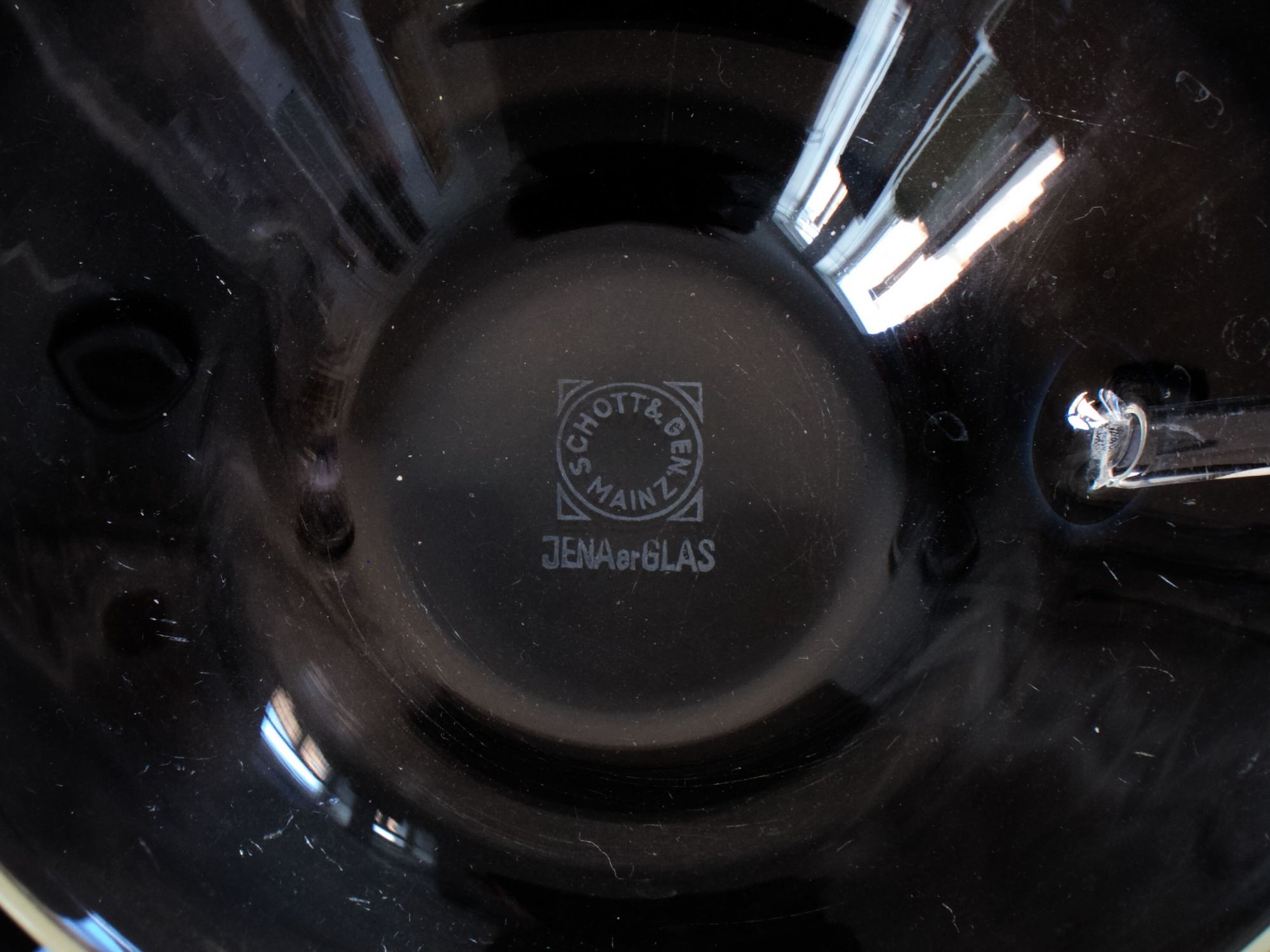 The Teapot is marked with Jenaer Glas, a circle in a Pentagon, Schott & Gen, Mainz, 1½ Ltr.
