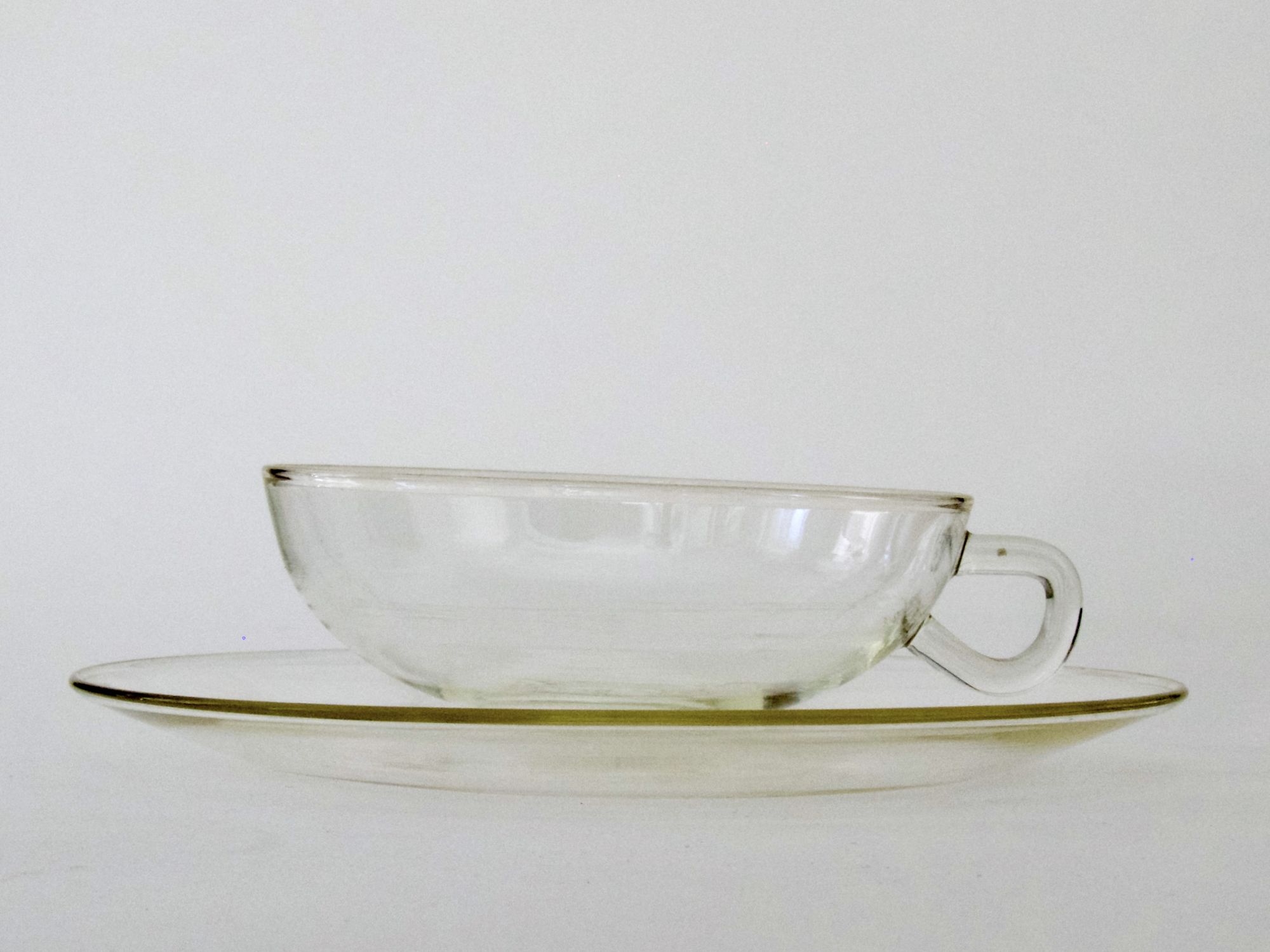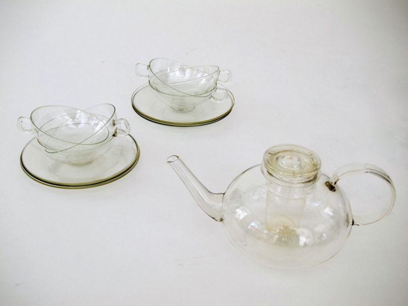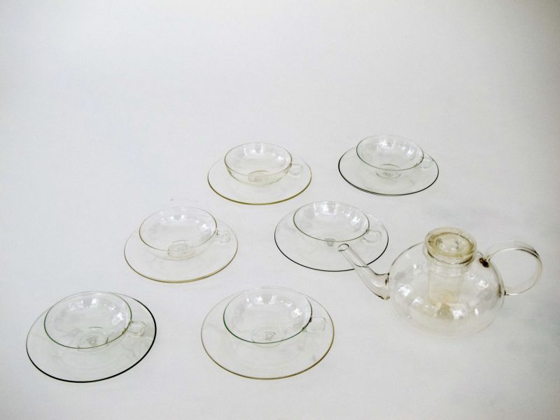 All cups and plates marked with: Jenaer Glas, a circle in a Pentagon and Tefla
