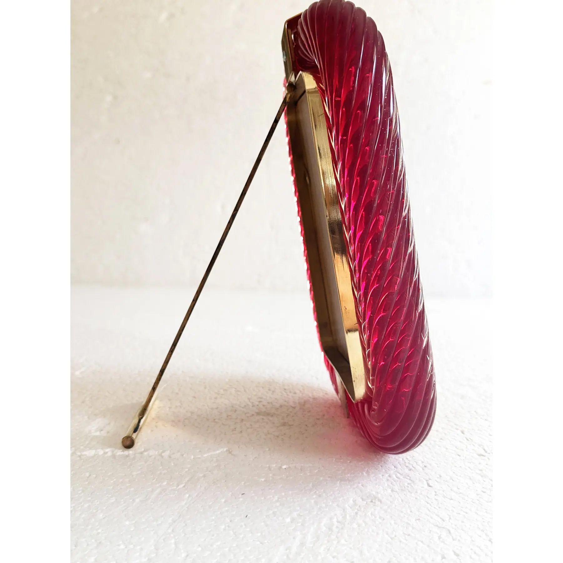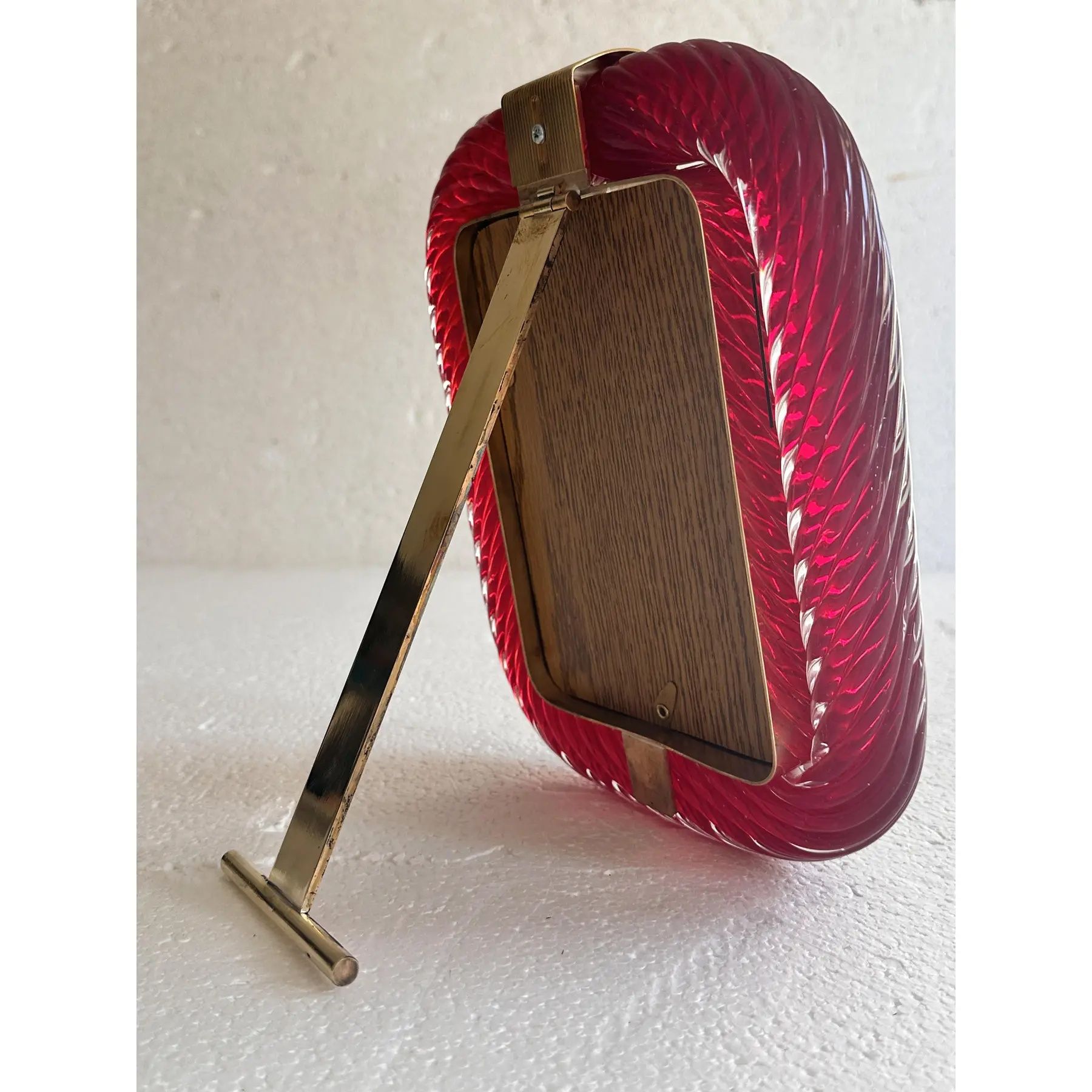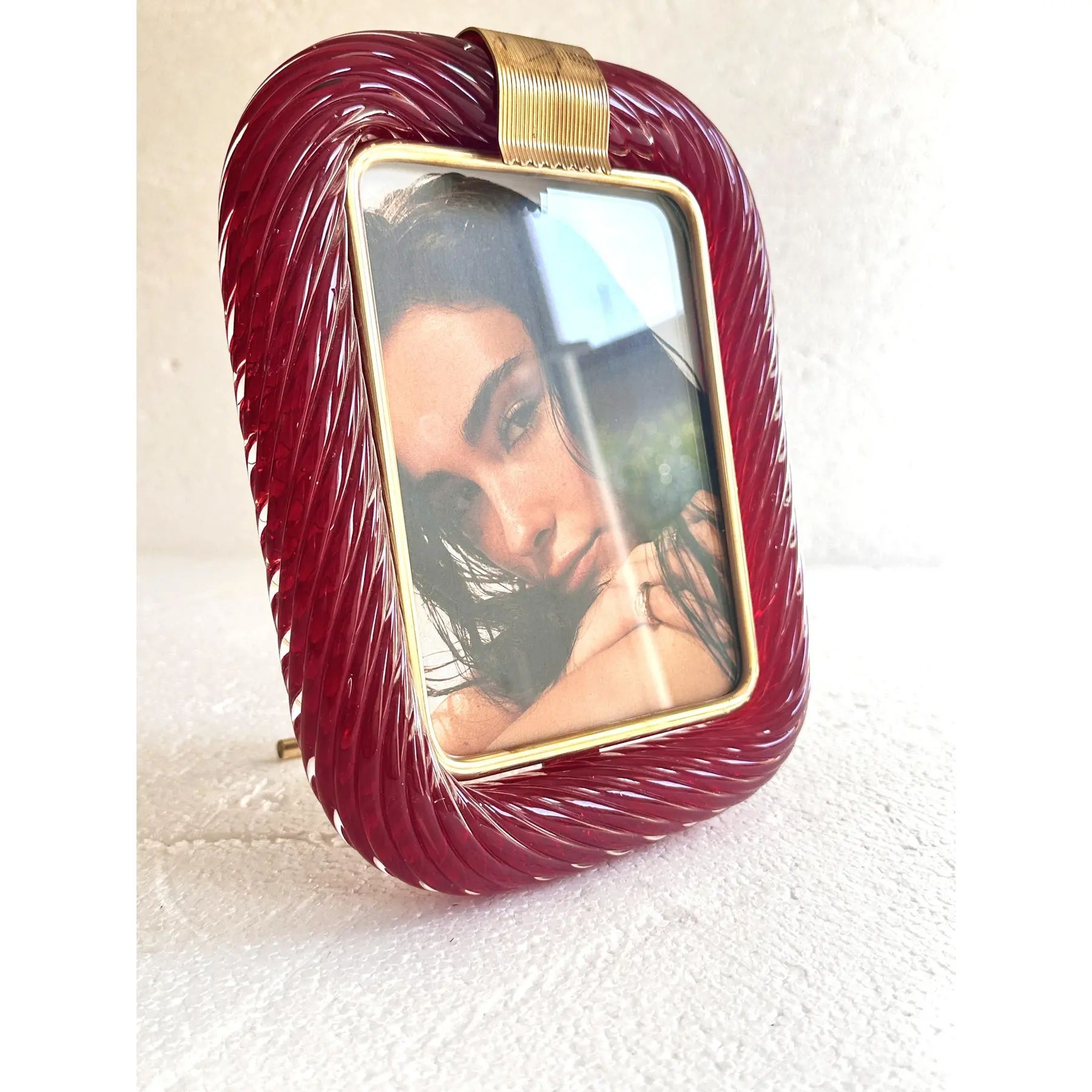 Venetian Red “Torchon” Murano Glass Picture Frame and Unaquered Brass in Barovier Style.