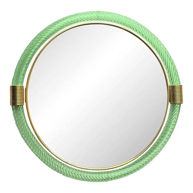 Venetian Round Green-Wather ”Torgiglione-Torchon” Murano Glass Wall Mirror
