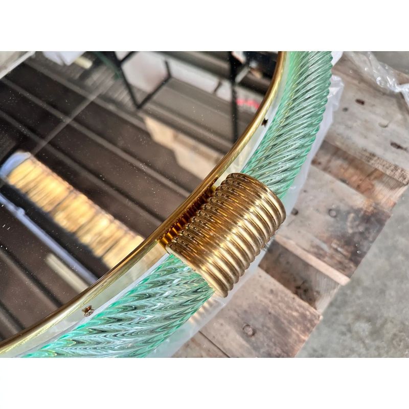 Mid-century modern style Round “Torciglione” Murano Glass Wall Mirror.