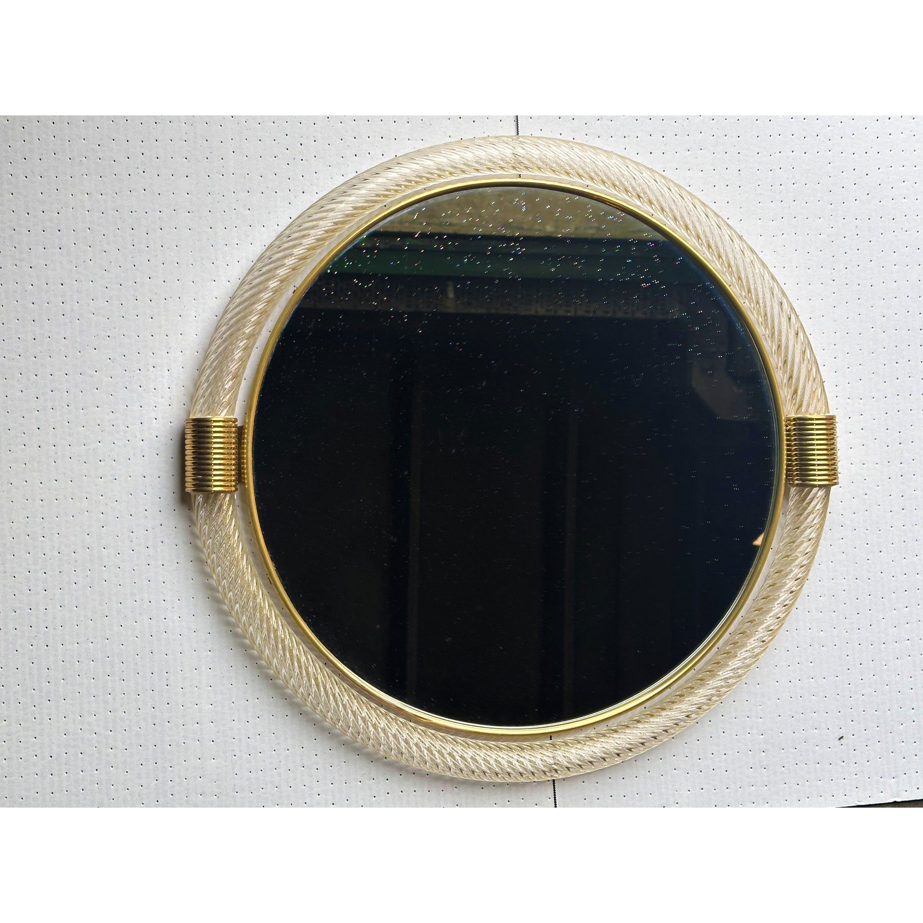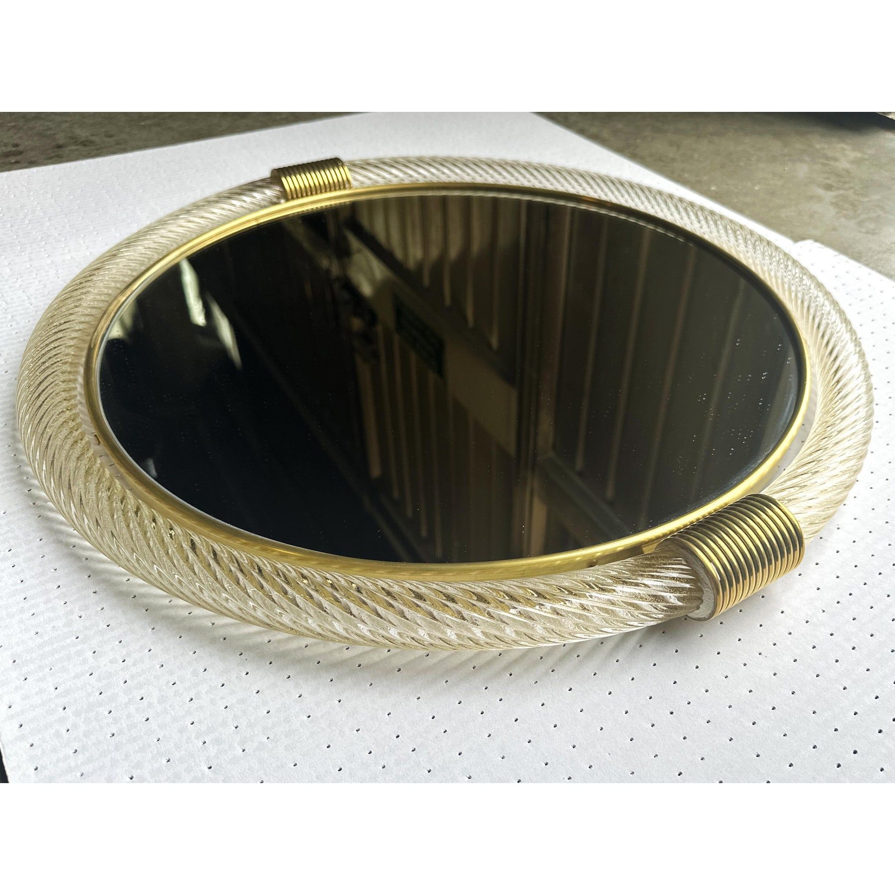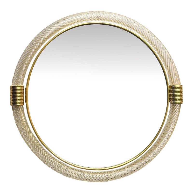 Round gold “Torciglione” Murano Glass Wall Mirror.