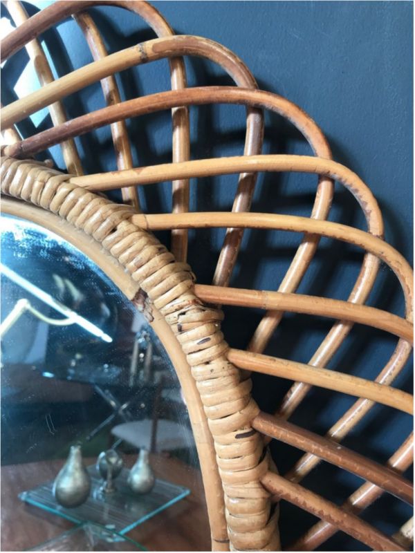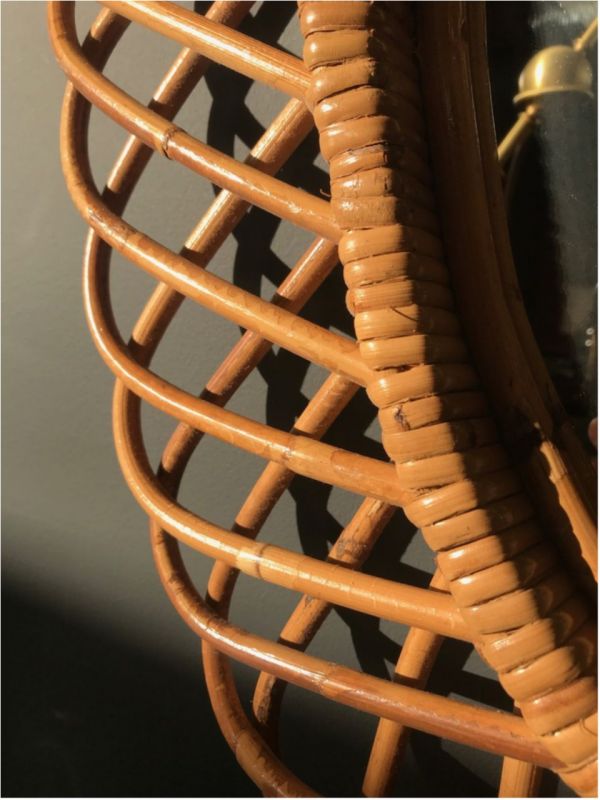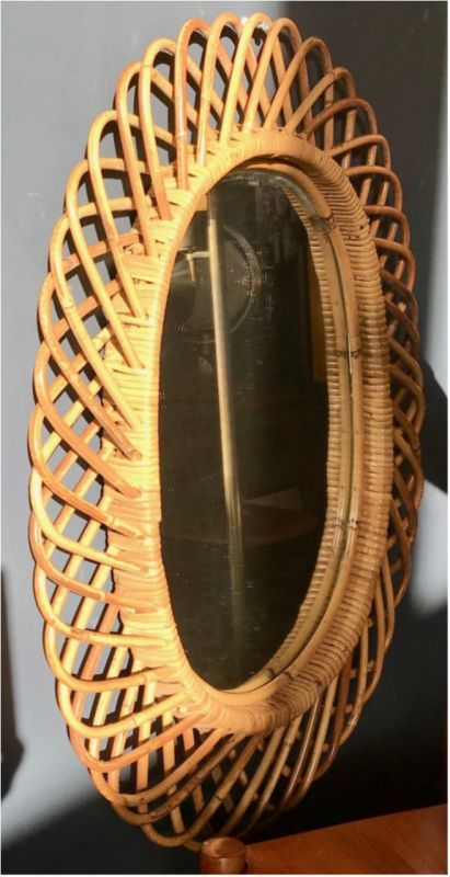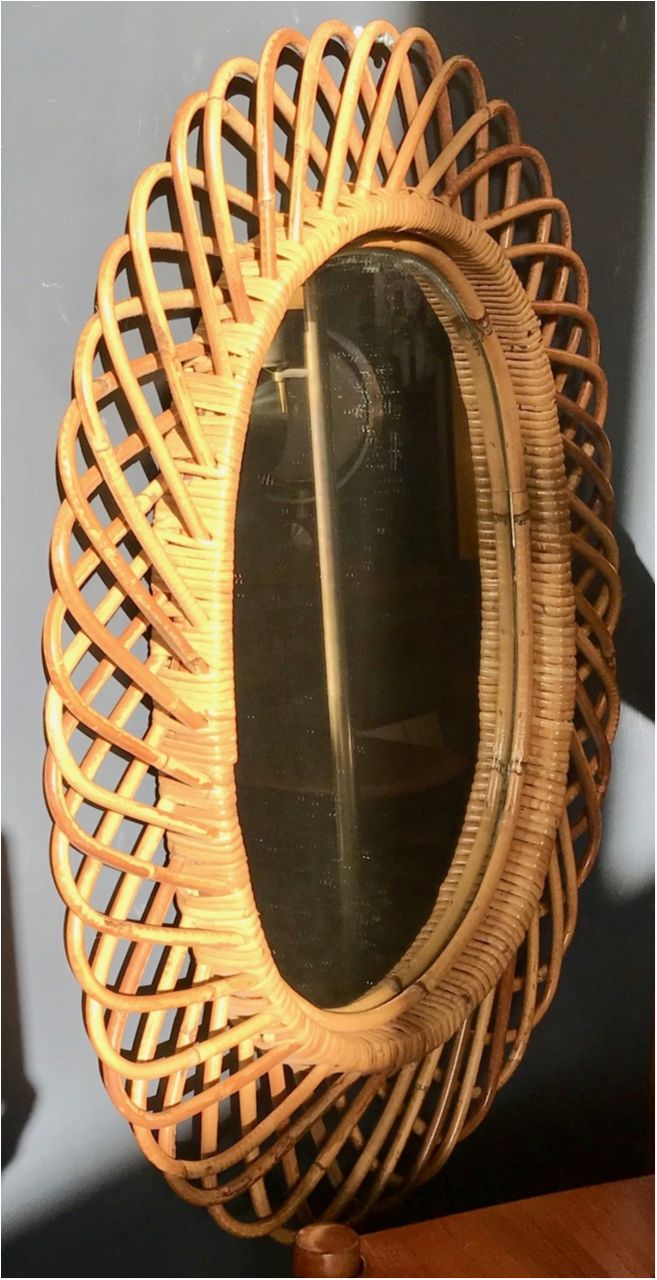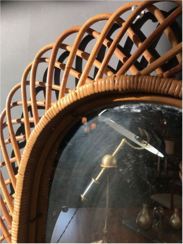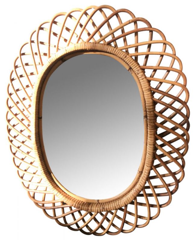 Vintage Rattan Oval Wall Mirror, Italy circa 1960s