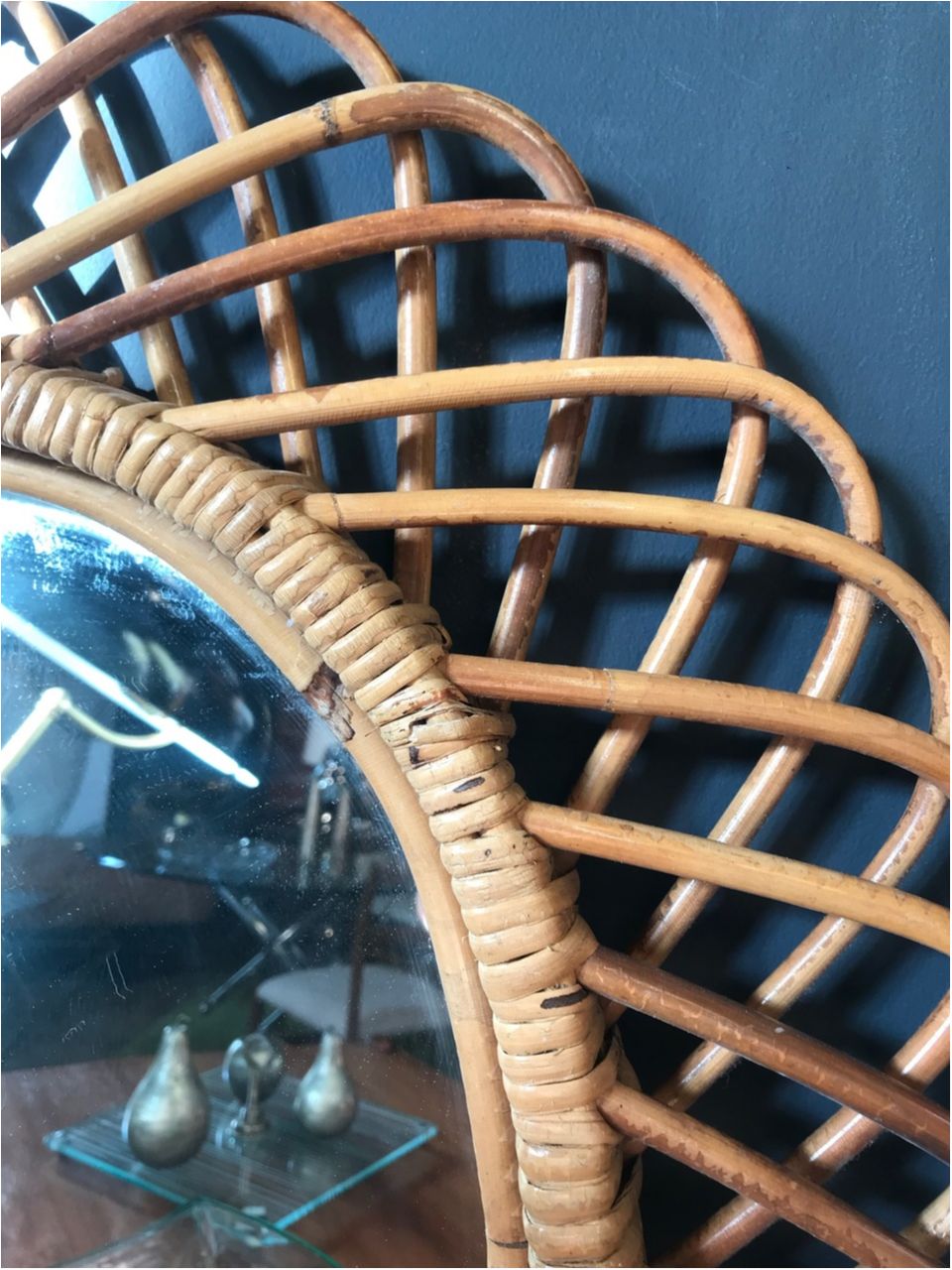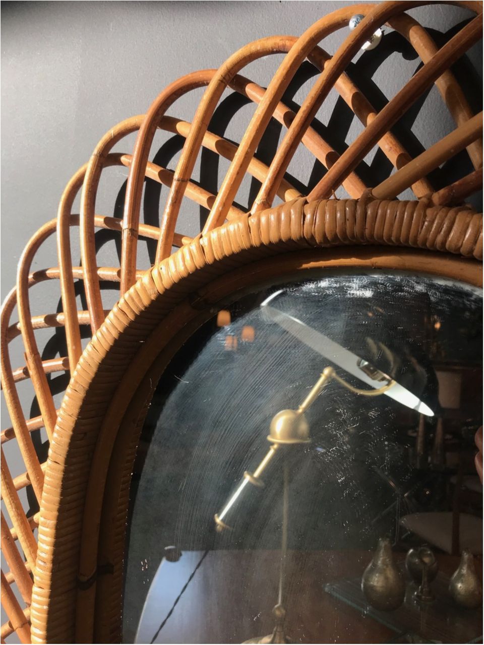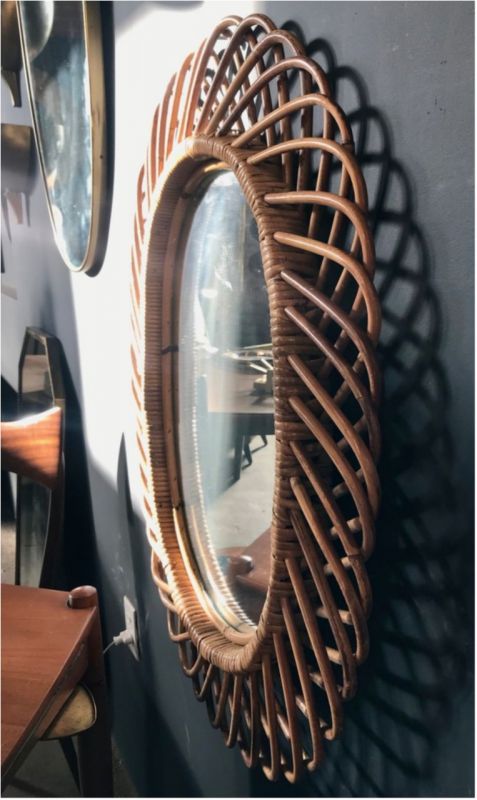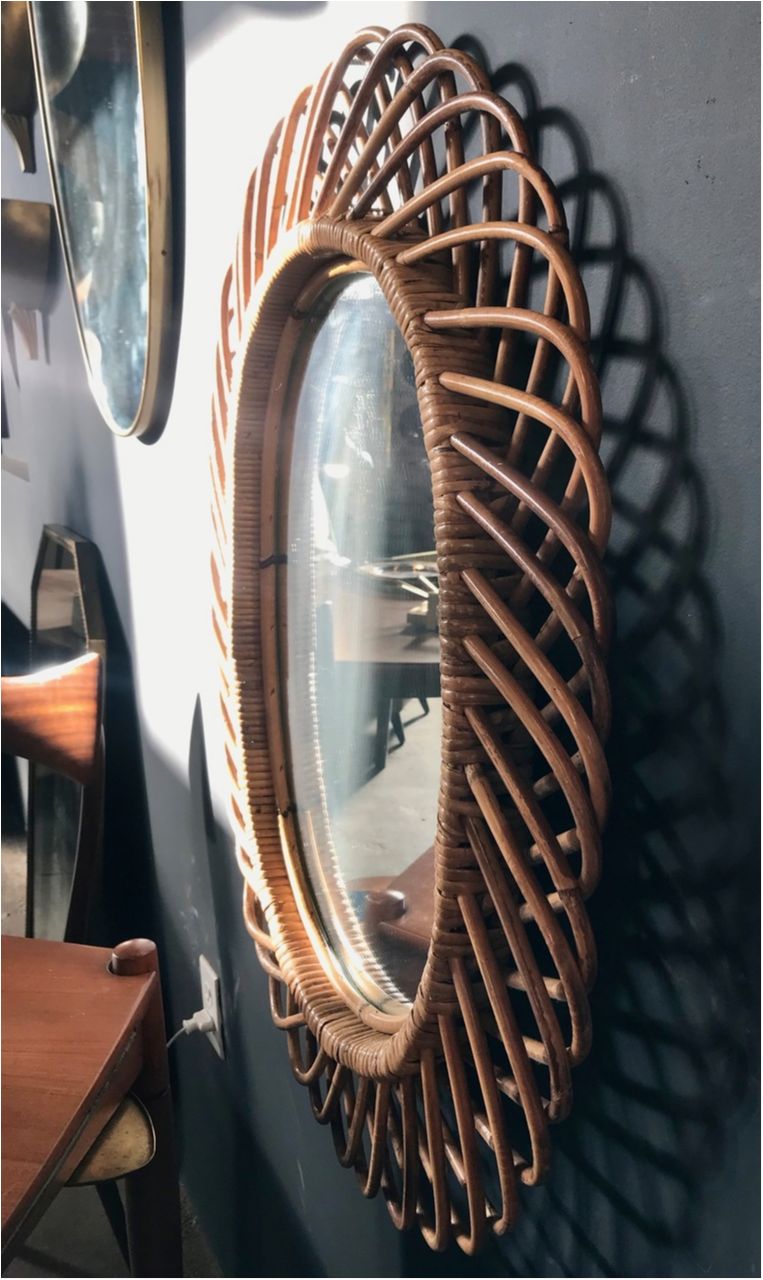 Vintage Rattan Oval Wall Mirror, Italy circa 1960s