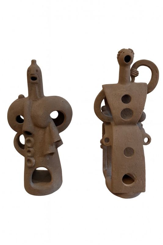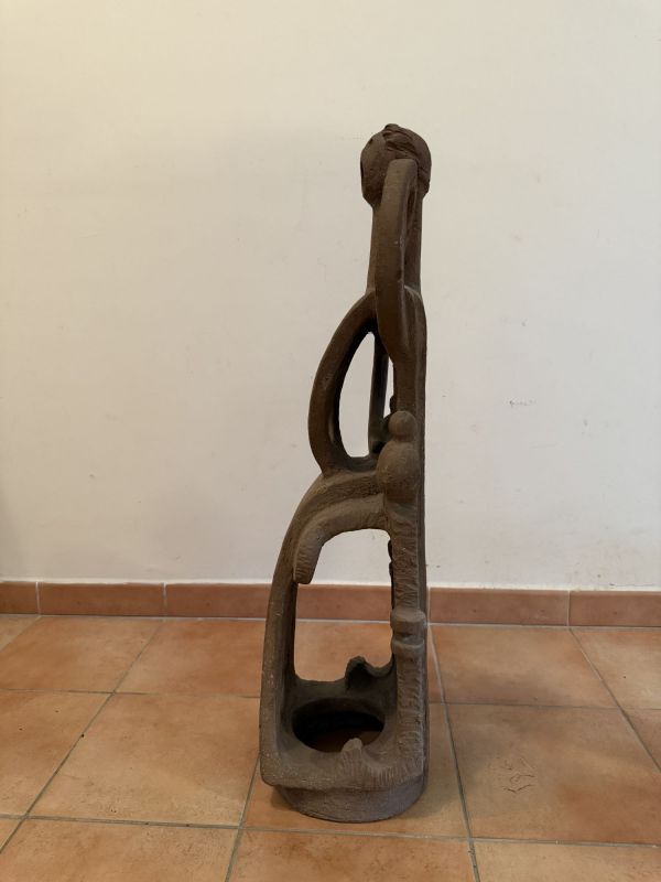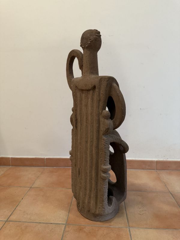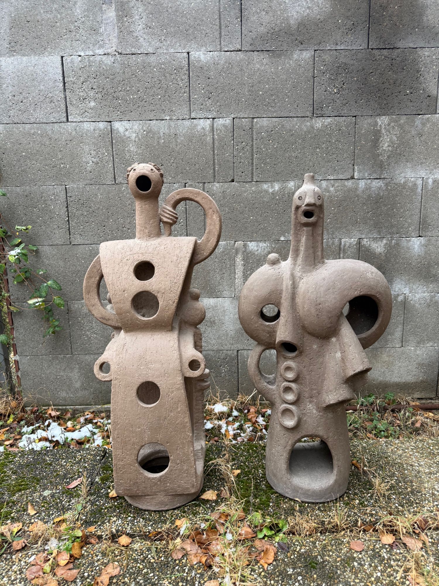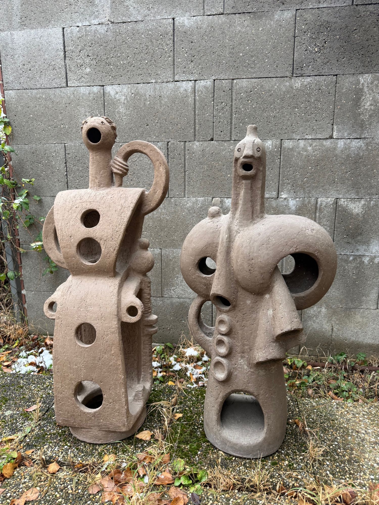 Abstract fireclay ceramics Man and Woman sculpture 1960's-1970's by István Komlós in the style of Alexander Archipenko.