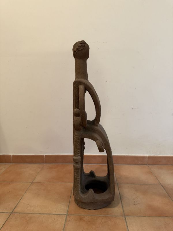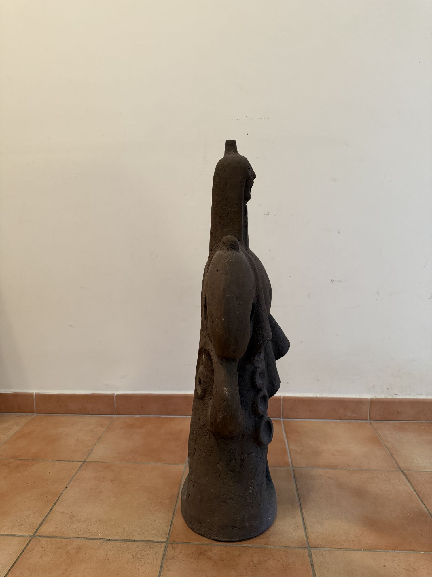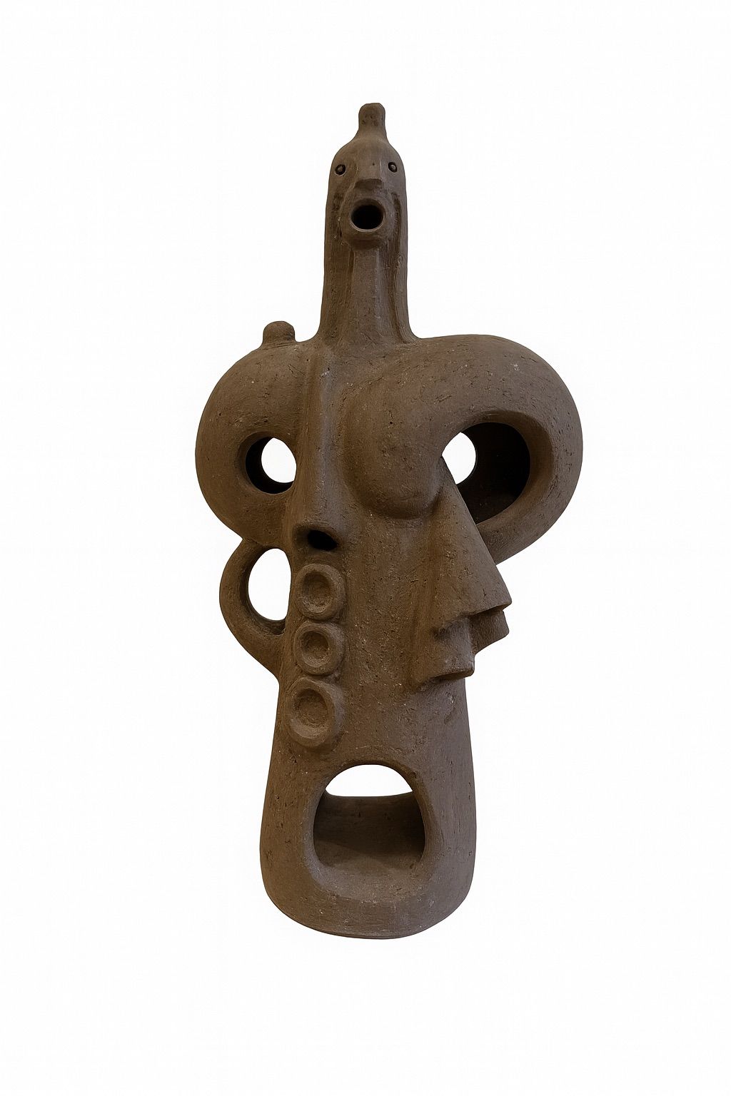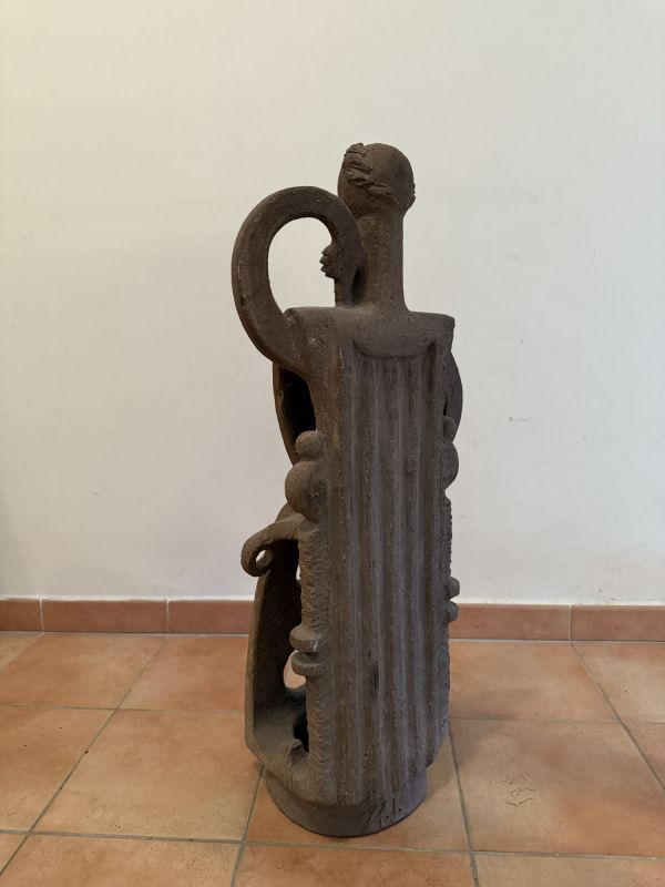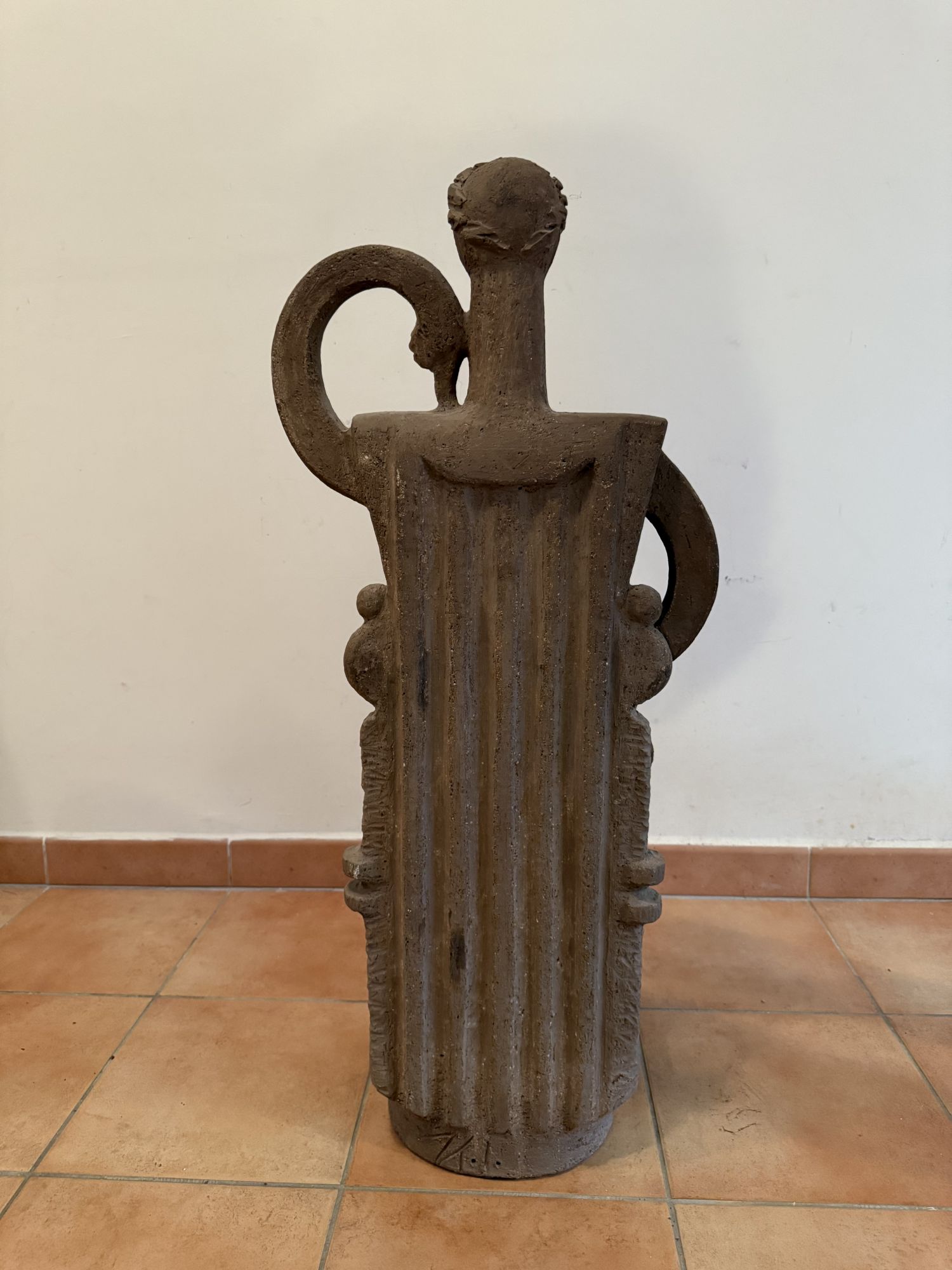 Abstract fireclay ceramics Man and Woman sculpture 1960's-1970's by István Komlós in the style of Alexander Archipenko.