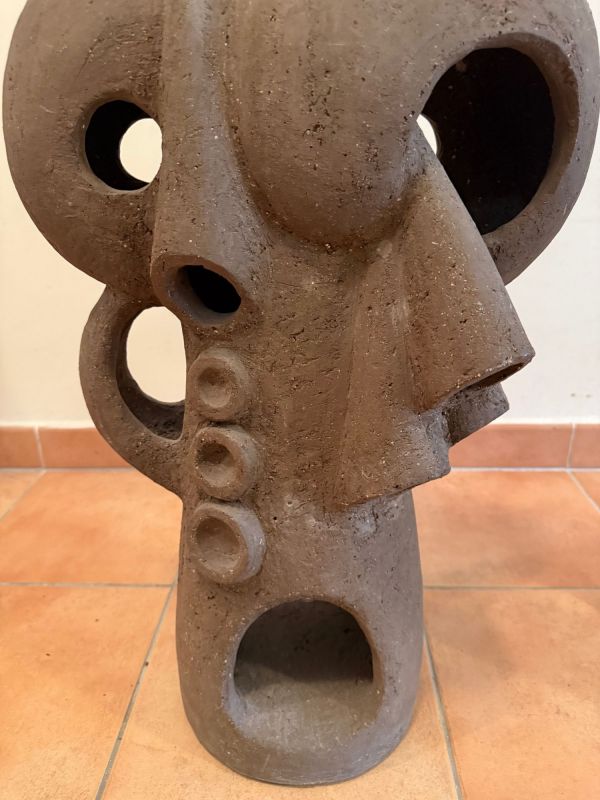 Abstract fireclay ceramics Man sculpture 1960's-1970's by István Komlós in the style of Alexander Archipenko.
