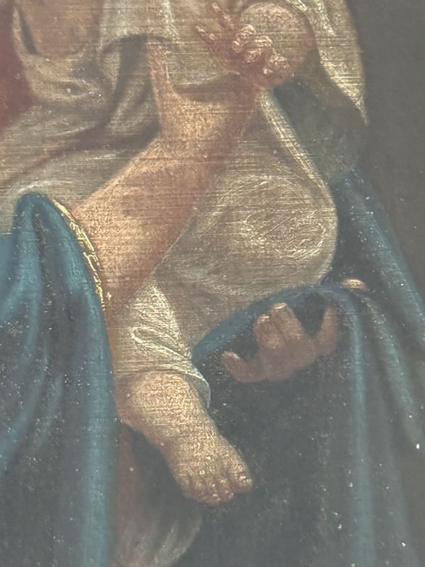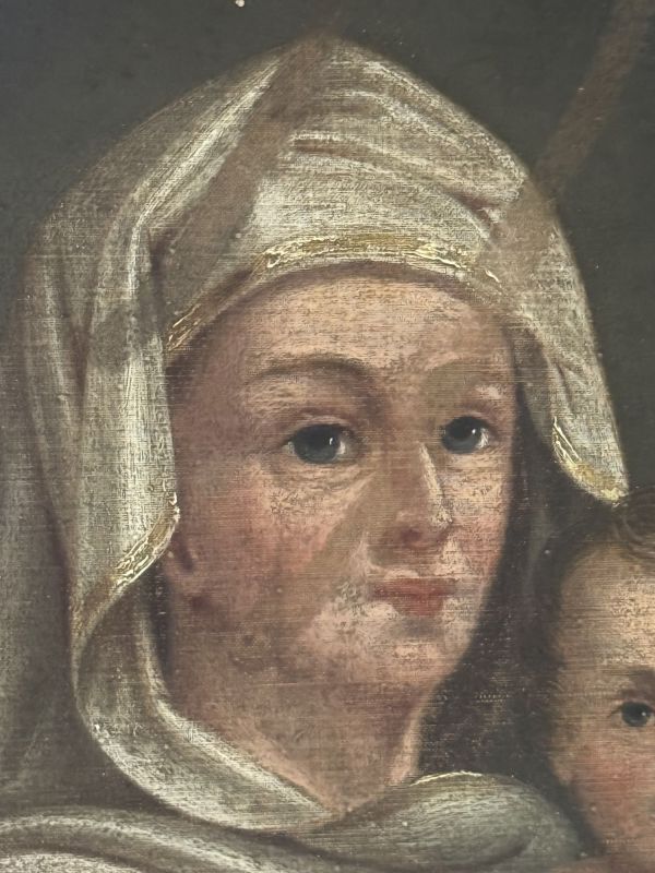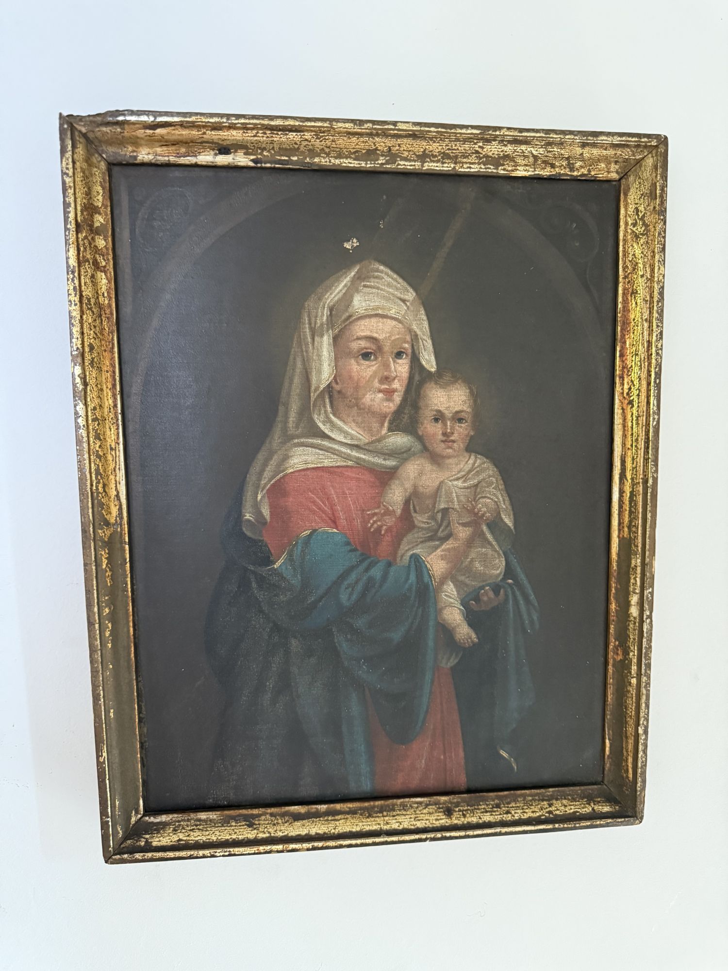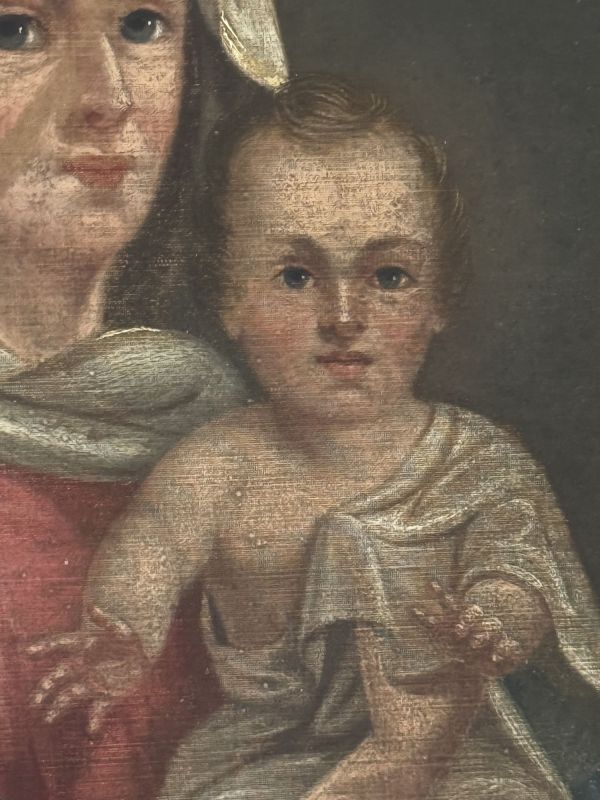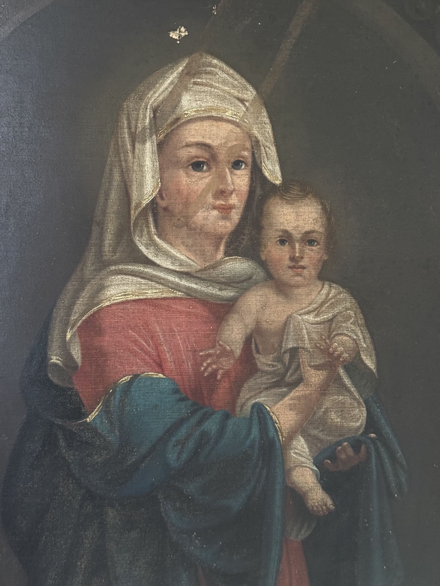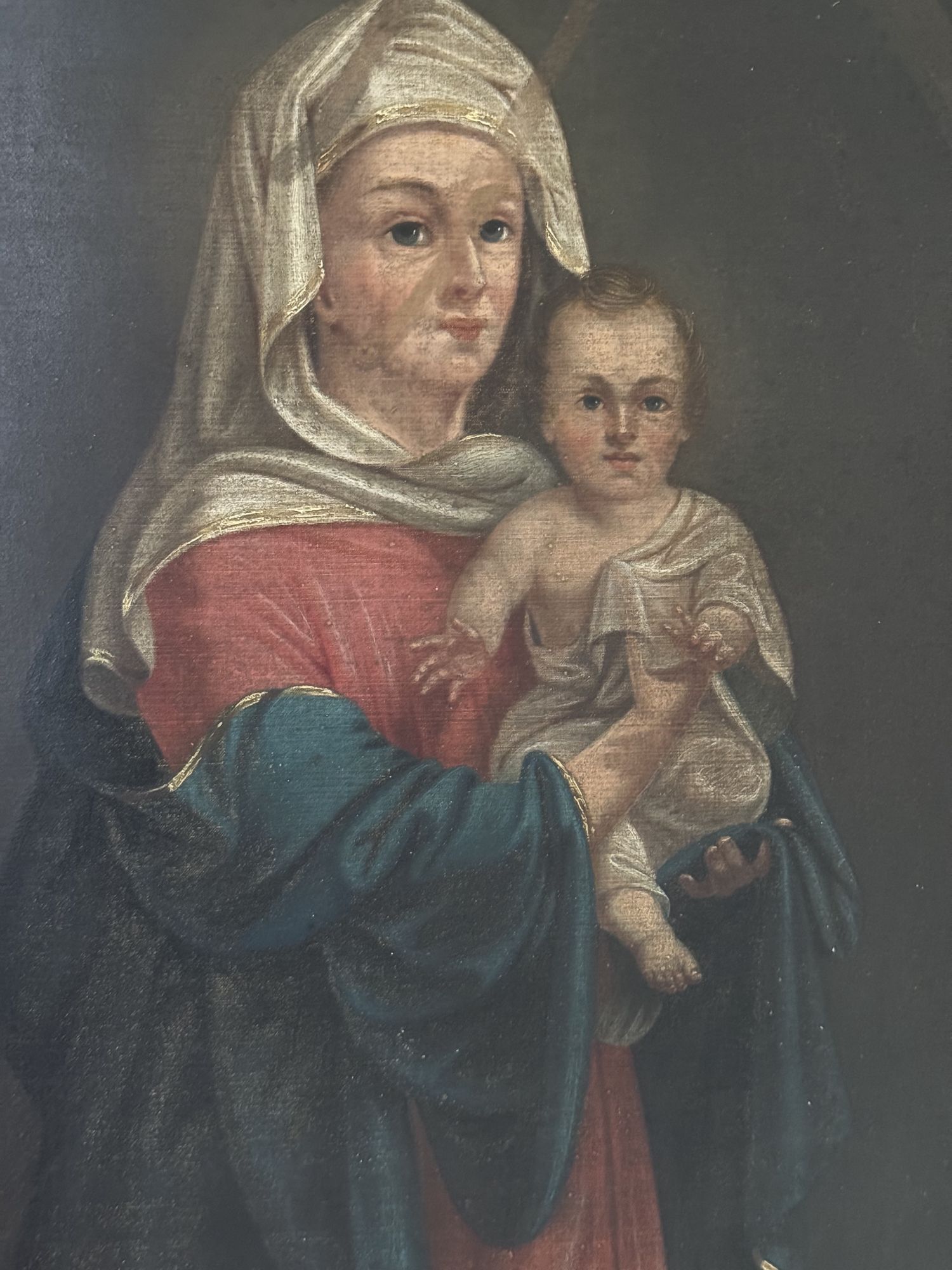 Baroque painting: Madonna with child 18th century Italy , made of oil on canvas , framed.