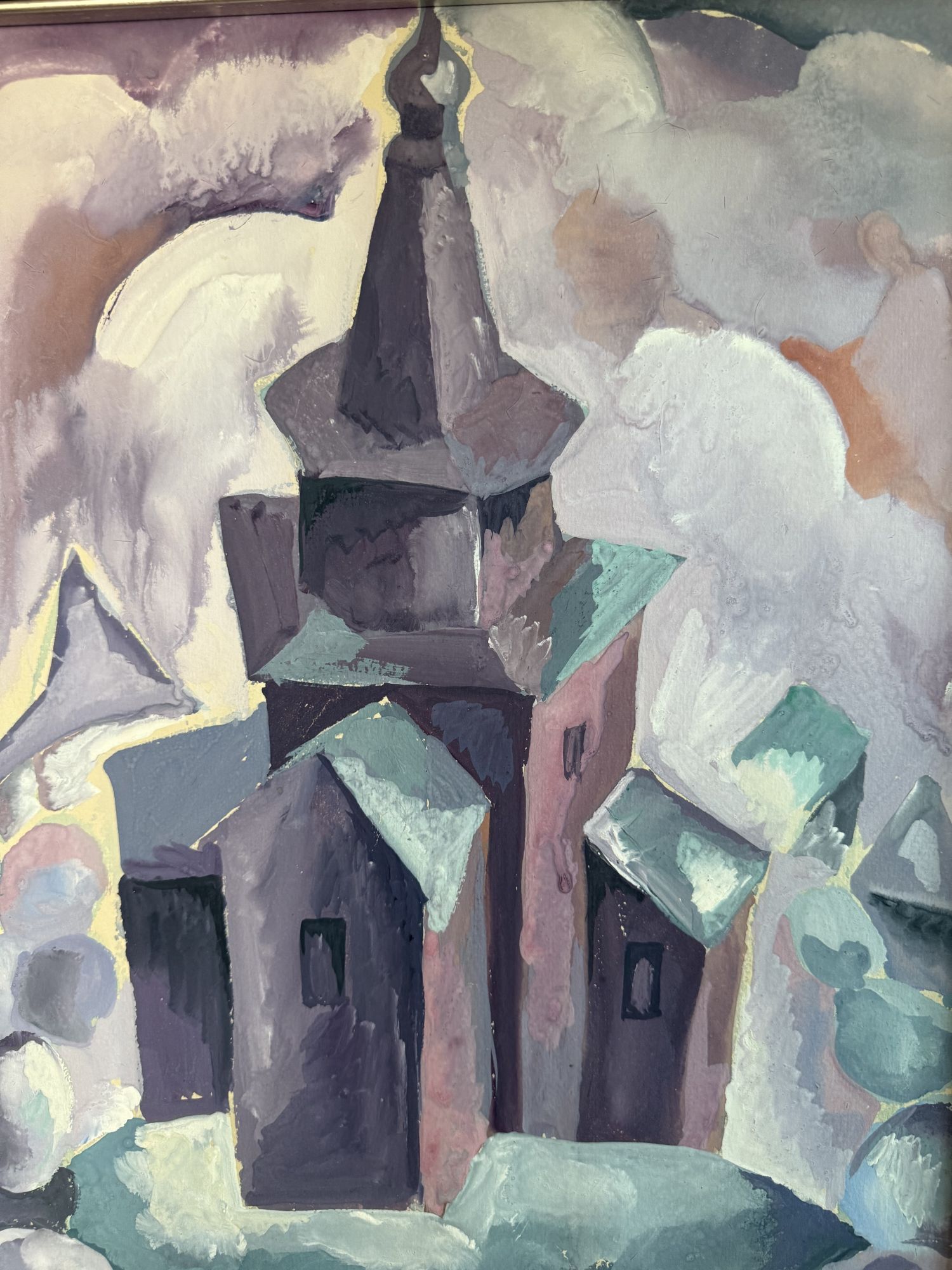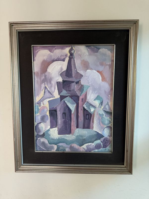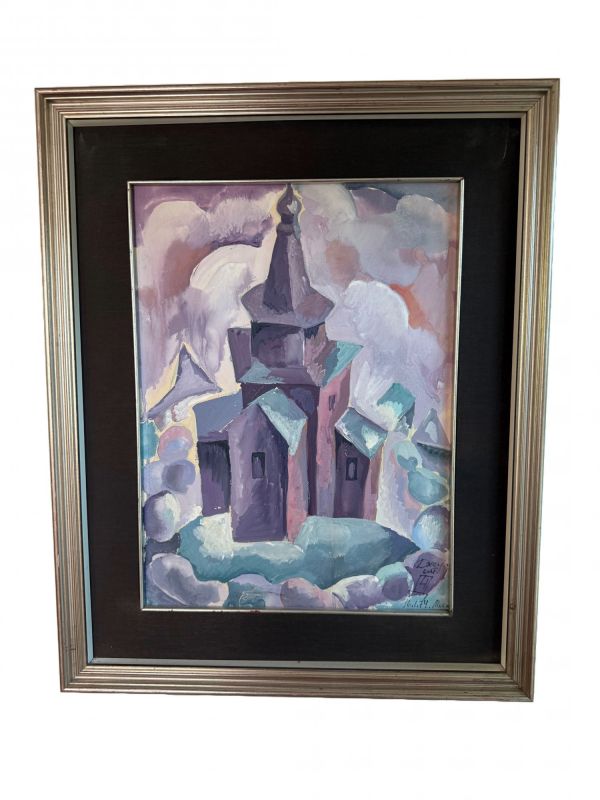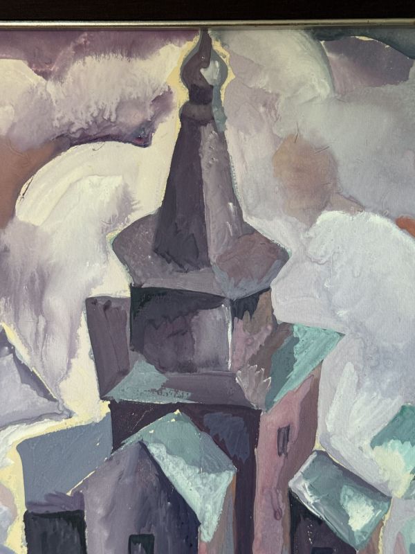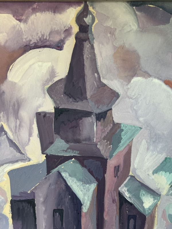 Church of Novgorod. Abstract painting by Alexander Baku, made for "Dzsuminka" in Novgorod in the 1974.01.16. , watercolour on paper, professionally framed. We ship world wide.