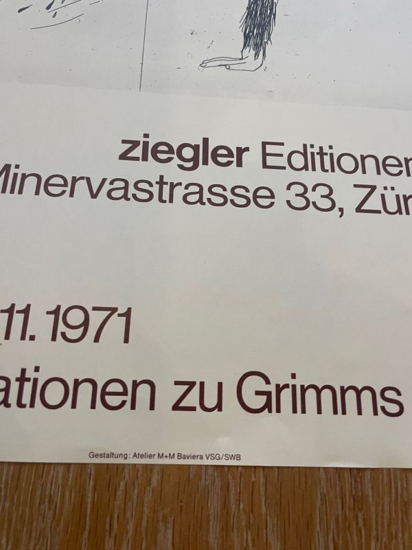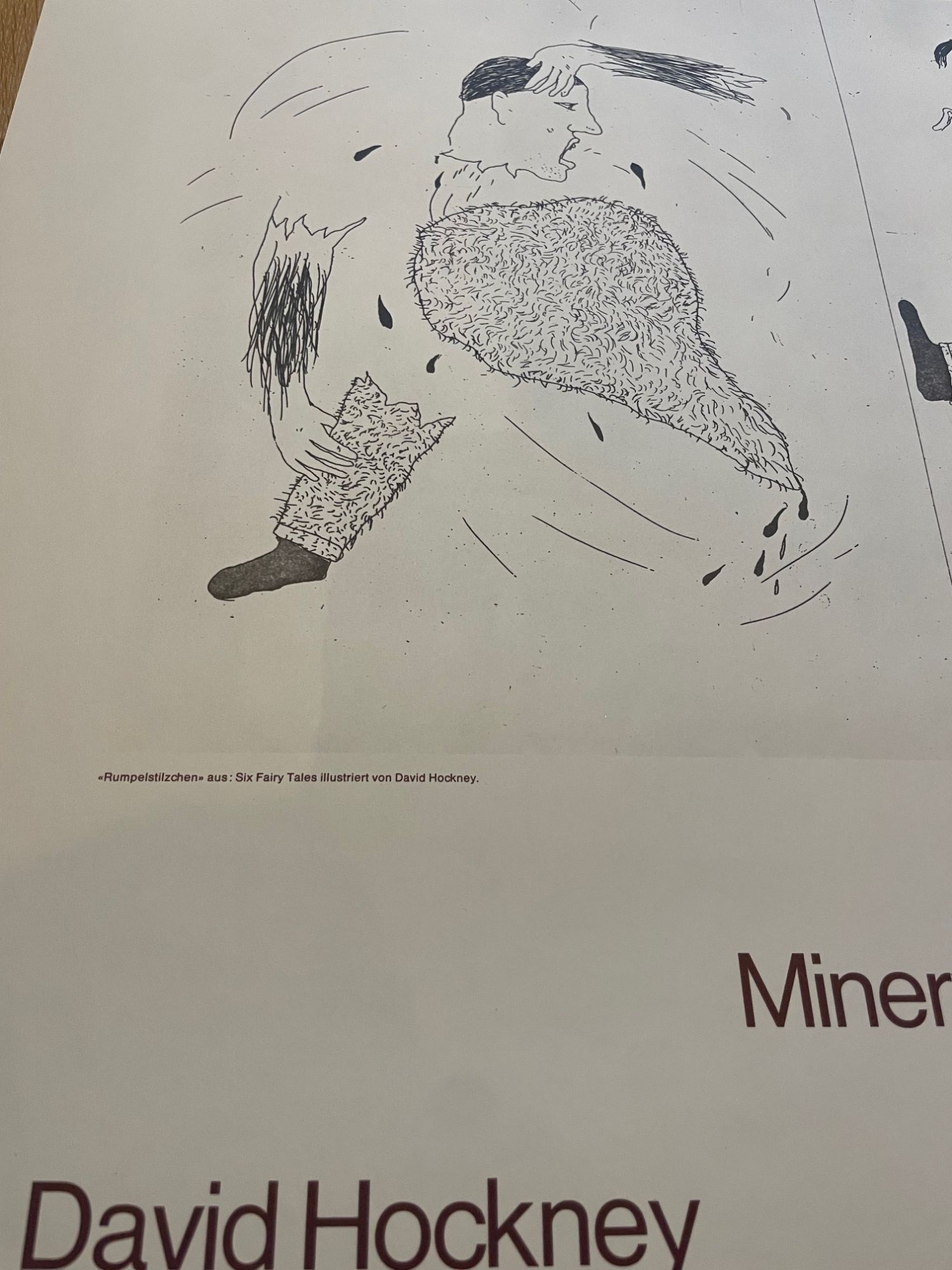 A remarkable poster by David Hockney (b. 1937), one of the most influential British artists of the 20th and 21st centuries. Known for his vibrant use of color, inventive compositions, and mastery across painting, printmaking, and photography, Hockney has continually pushed the boundaries of modern art. Created for Grimm’s Fairy Tales, these illustrations showcase his playful imagination and distinctive visual language. In good condition. Secure, insured worldwide delivery available.