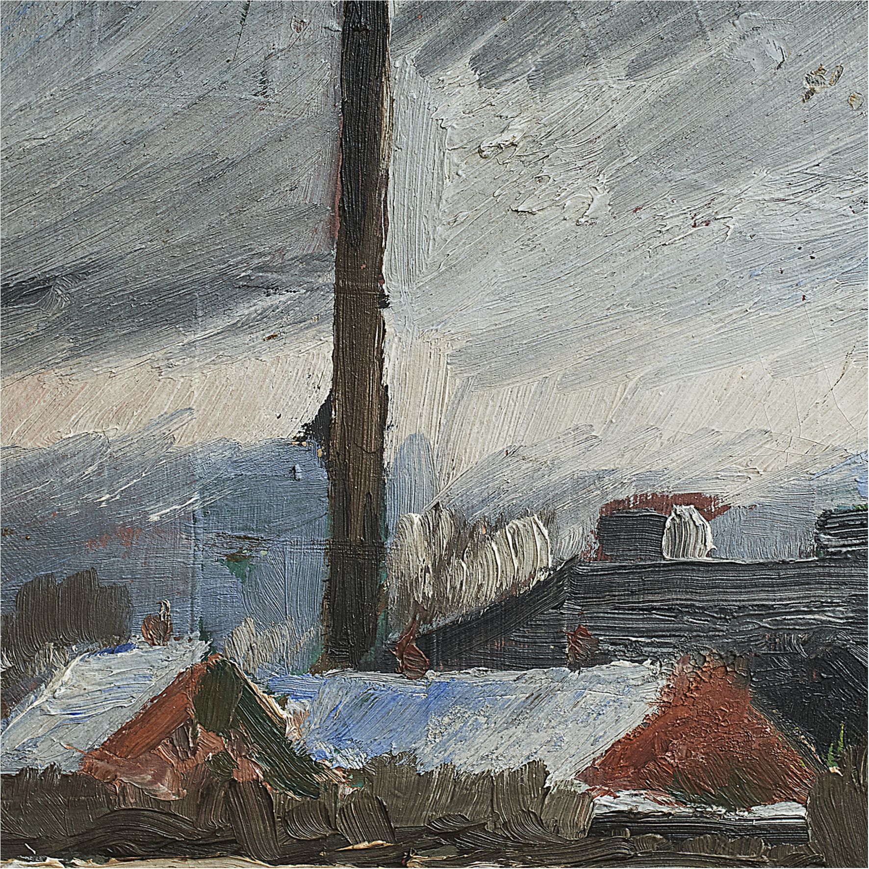 Erik Hoppe Painting of a Winter Landscape with Houses