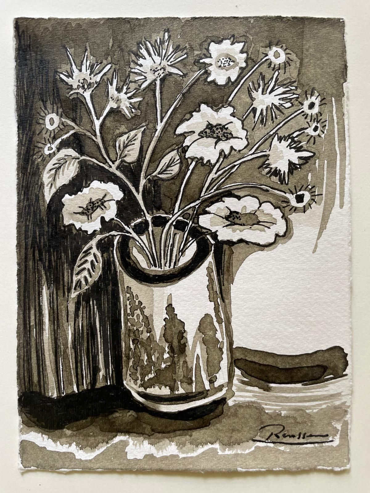 A soft yet vibrant ink drawing made by Dutch artist Erik Renssen (NL, 1960) who is inspired by the visual language of Pablo Picasso. Unique piece. Comes in a handmade frame.