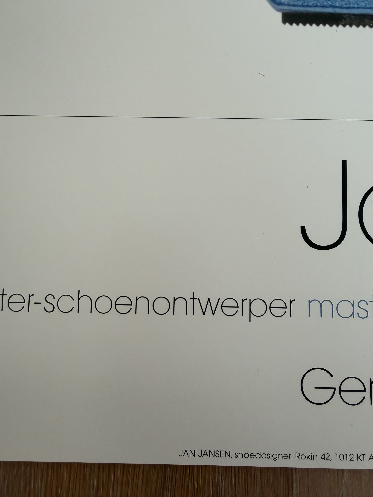 Rare original Jan Jansen poster titled “Stir My Blue Blood,” created in 1995 by the famous Dutch shoe designer. The poster includes photography by Claude Vanheye and Joost Guntenaar from 2002, and it was printed in Holland with reference number /#PS 1005. The address Rokin 42 in Amsterdam is noted as part of the original design. The piece remains in good vintage condition with only minimal signs of age, and the colors are still vibrant and striking. Secure delivery and careful packaging are guaranteed to ensure safe arrival. This is a wonderful collector’s item for admirers of Jan Jansen, iconic footwear design, and fashion history.