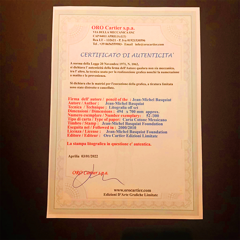 Publisher's Stamps (Jean-Michel Basquiat Foundation) impressed on the front and back,