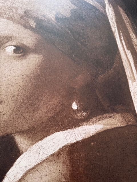 Large-format art print of Girl with a Pearl Earring (Jeune fille à la perle) by Johannes Vermeer (1632–1675), one of the most celebrated masterpieces of Dutch Golden Age painting. The original work is housed in the Mauritshuis.
