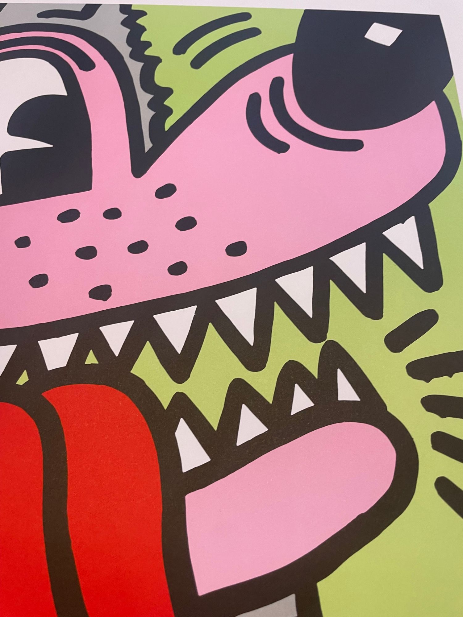 Vibrant and instantly recognizable work by Keith Haring, capturing his bold lines and energetic pop-art style. Created during the height of his career, Big Bad Wolf reflects the artist’s unique visual language and social spirit. In good condition. Secure, insured worldwide delivery available.