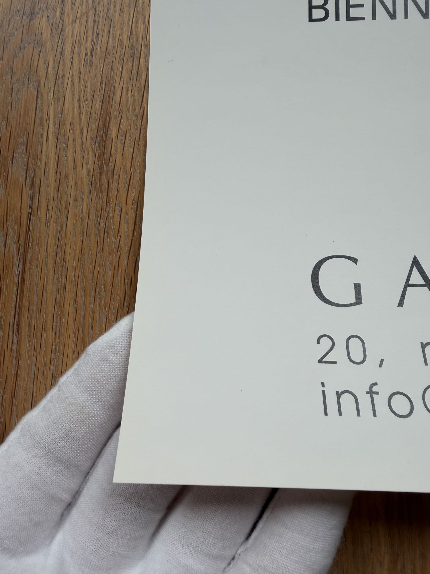 Original 2014 exhibition poster for Purisme — Esprit Nouveau, highlighting the founders of the Purist movement, Le Corbusier and Amédée Ozenfant. Created for the Biennale at the Grand Palais in Paris (September 11–21, 2014) and the follow-up exhibition at Galerie Zlotowski (September 23–November 15, 2014). The poster features Le Corbusier’s Nature morte puriste (1925)