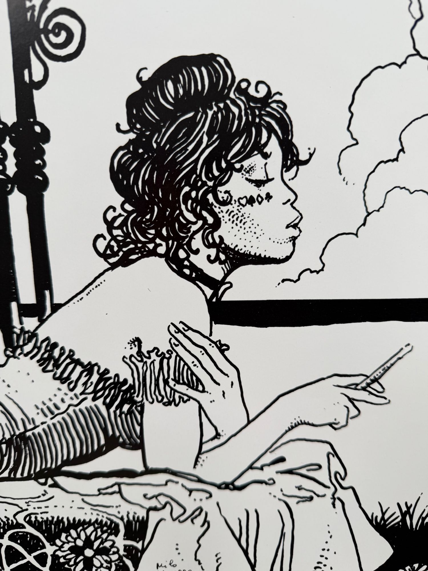 Print by Milo Manara, born Maurilio Manara in 1945 in Lüsen, South Tyrol. Manara is an internationally acclaimed Italian comic book artist and writer, best known for his distinctive, elegant line and his erotic approach to the medium. His work has had a lasting influence on European comics and illustration. The artist lives and works in Rome, Italy.