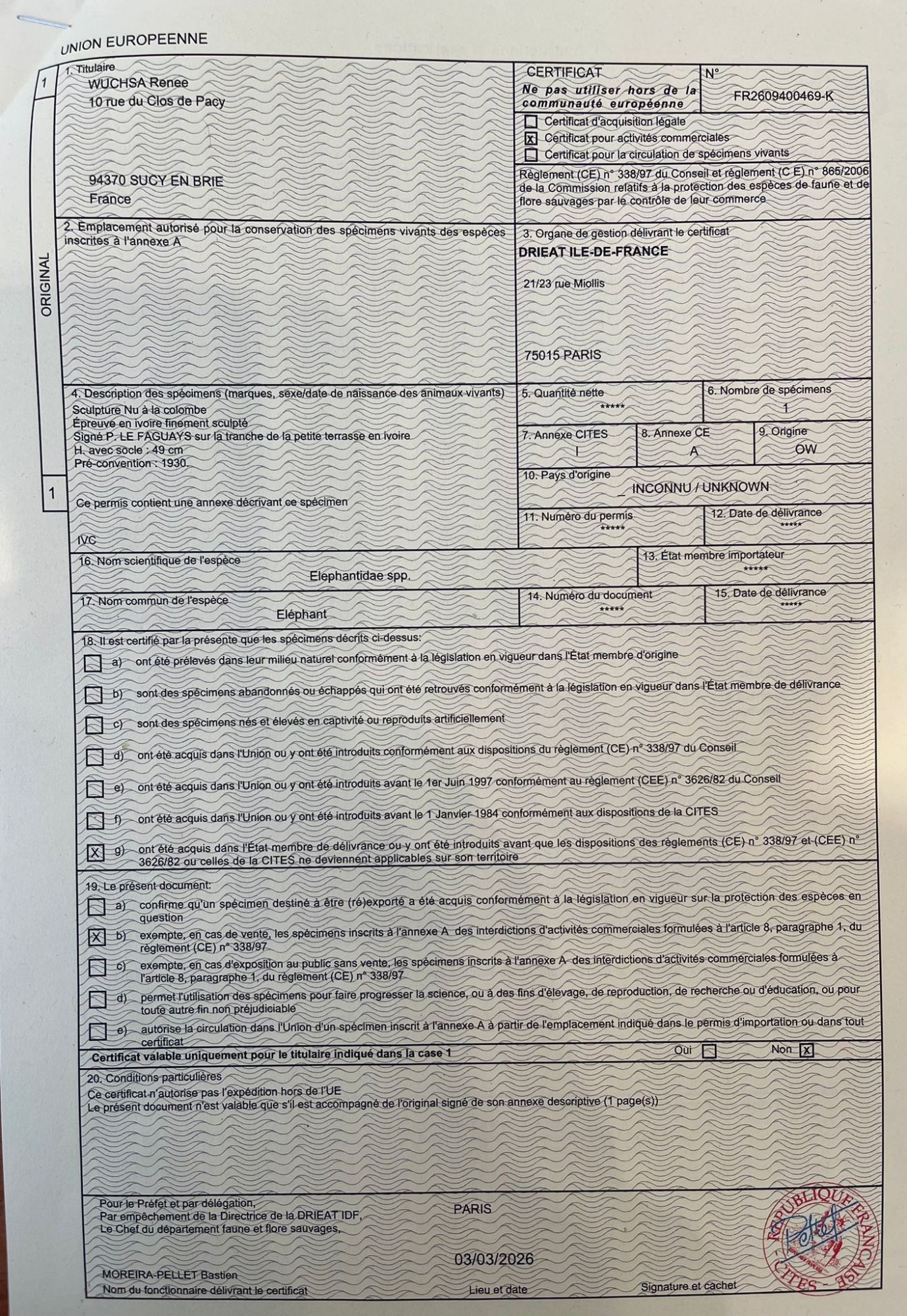 Signé P. Le Faguays sur la tranche de la petite terrasse en ivoire.