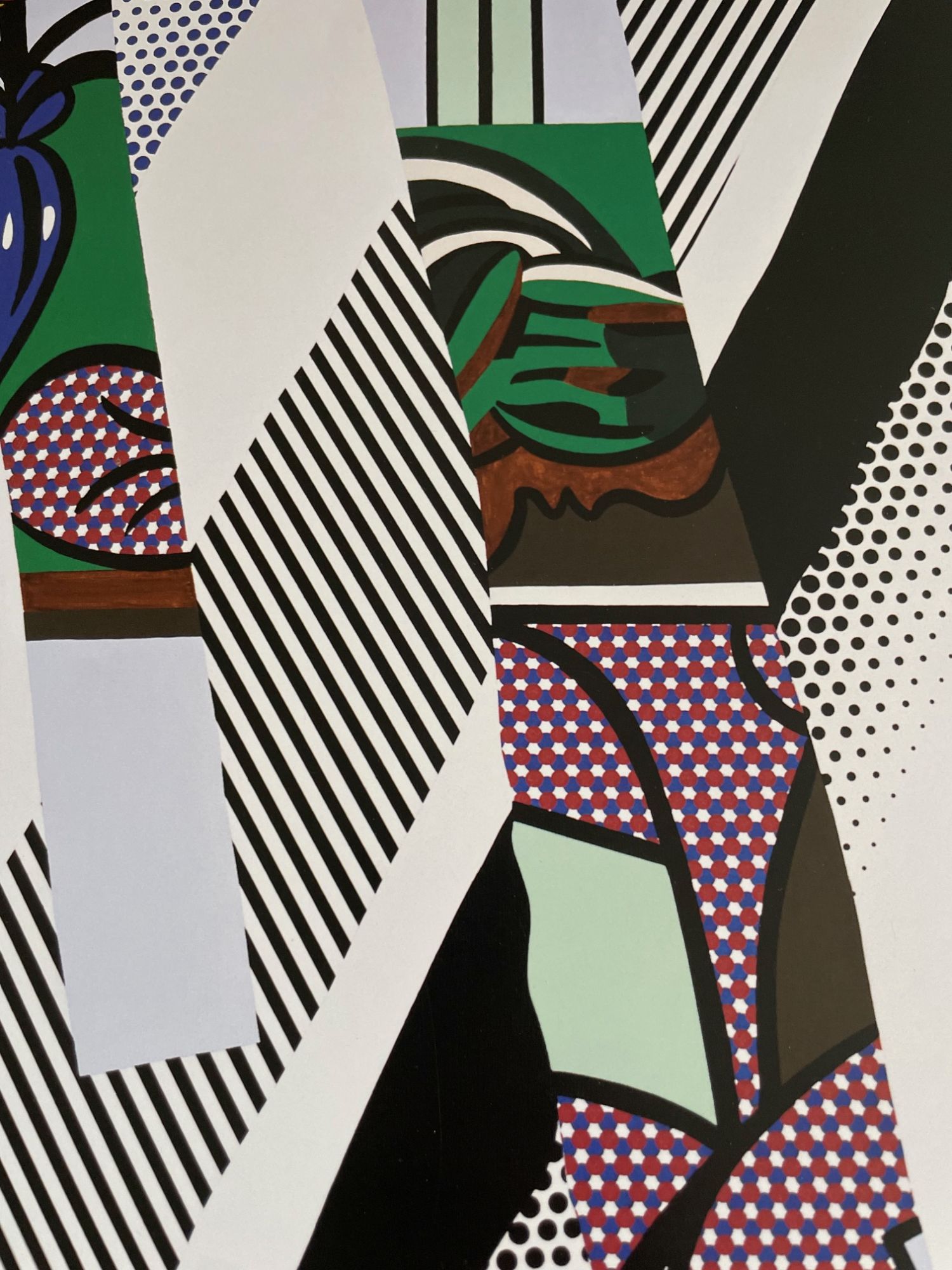 Printed in the USA. This is an official licensed print of Roy Lichtenstein’s iconic work from his Reflections series. The image showcases his signature comic-inspired style, layered with visual depth and playful distortion. It’s a striking example of Lichtenstein’s late-period work, blending bold lines with conceptual sophistication. The print is in good condition with only minor signs of handling. It will be carefully packaged and securely shipped. A perfect addition to any pop art or modern art collection.