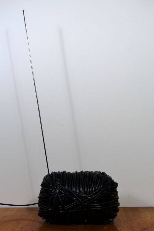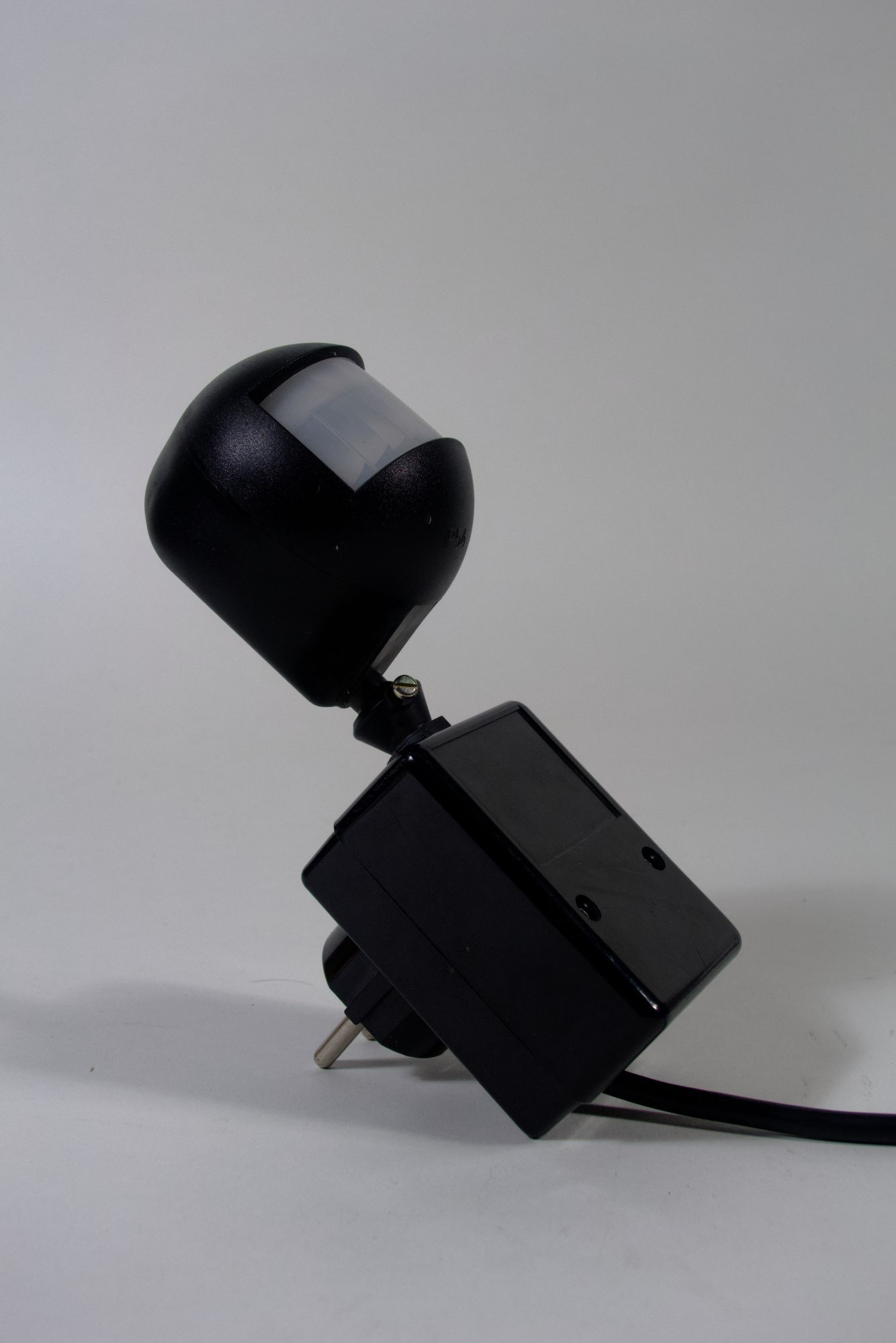 Working radio (KW 6075 KHZ), black cable, cable ties, and motion detector;