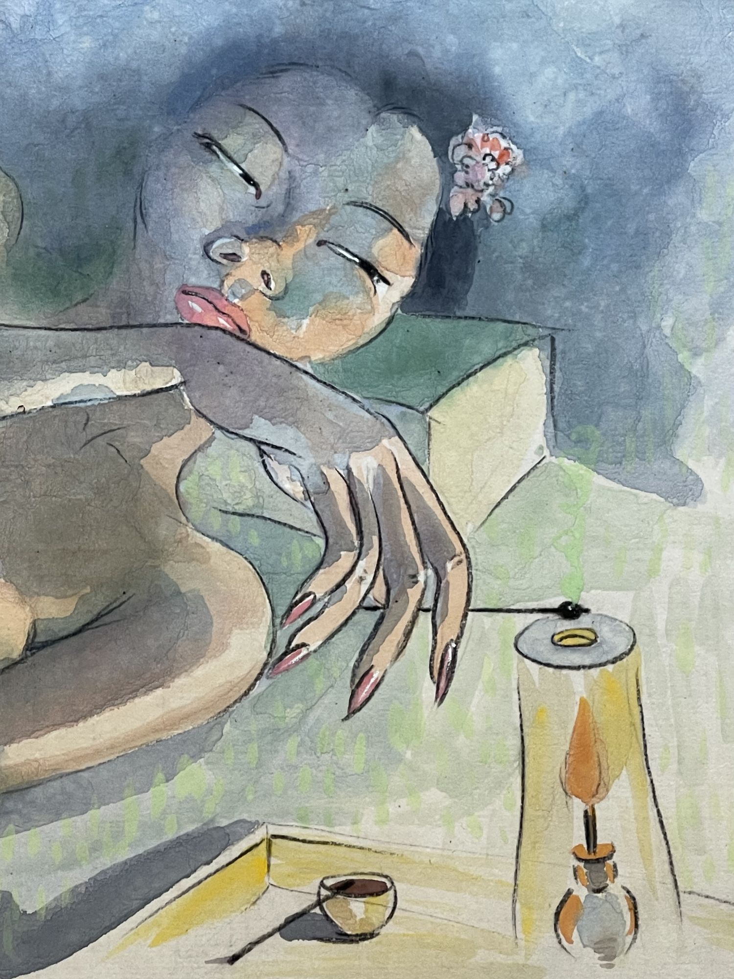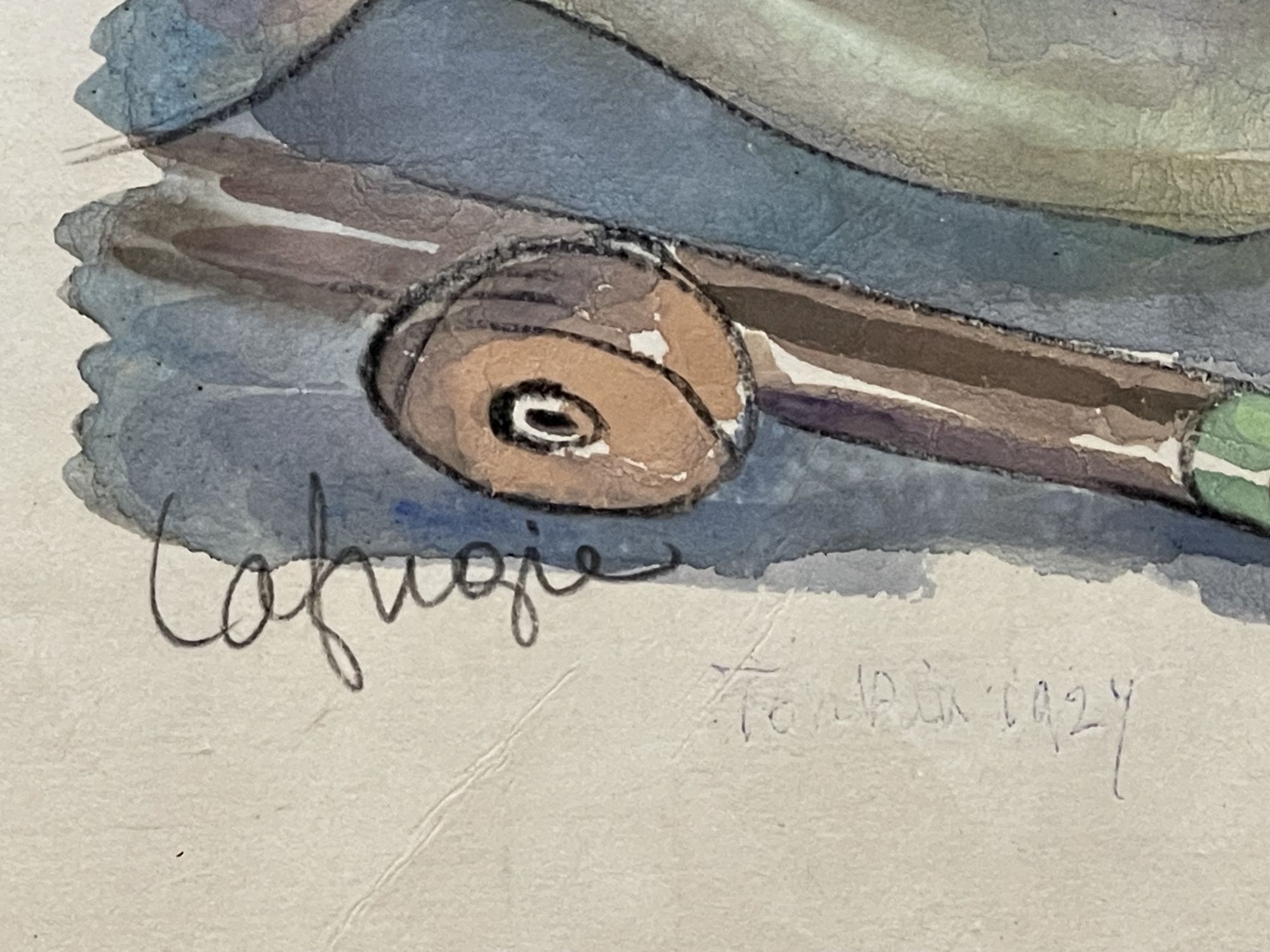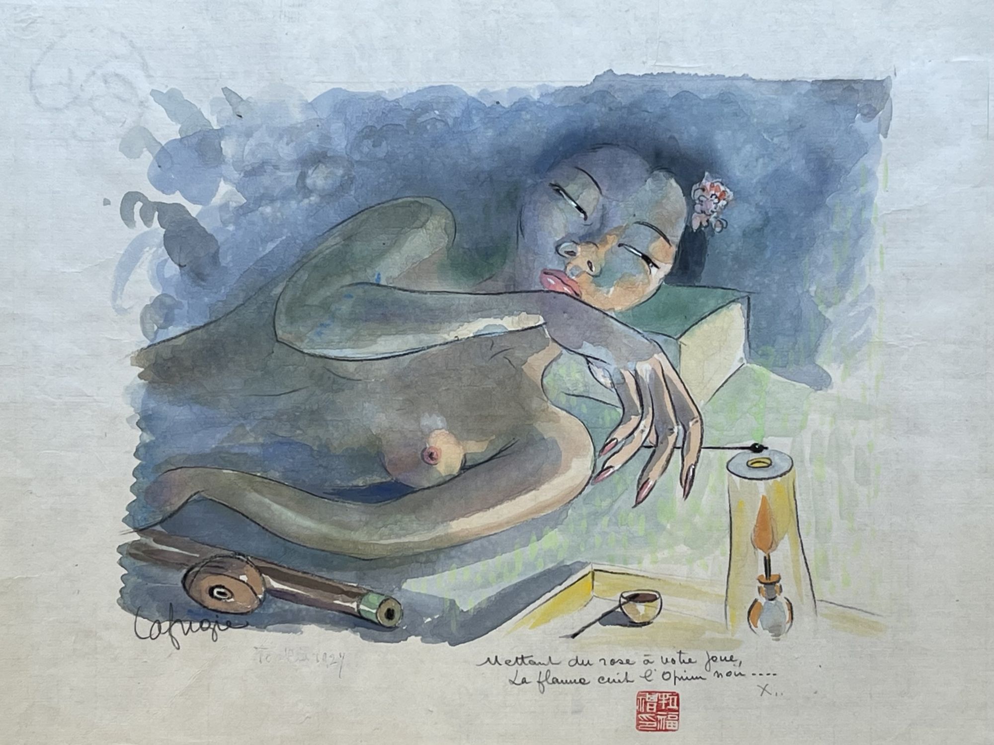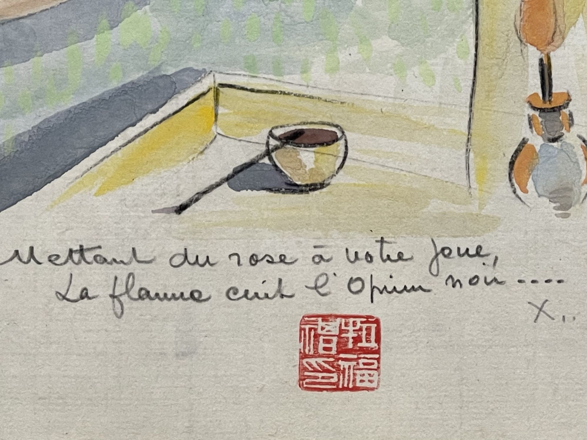 Léa Lafugie (1890–1972) was a painter who traveled extensively across Asia. She was renowned for her portraits. She studied at the School of Decorative Arts, followed by the École des Beaux-Arts in Paris. With an adventurous and curious spirit, she set off in 1925 on a journey through Asia, visiting countries such as China, India, Tibet, Japan, and the Indochinese Peninsula. During her travels, she created numerous spontaneous portraits of women, capturing them spontaneously.