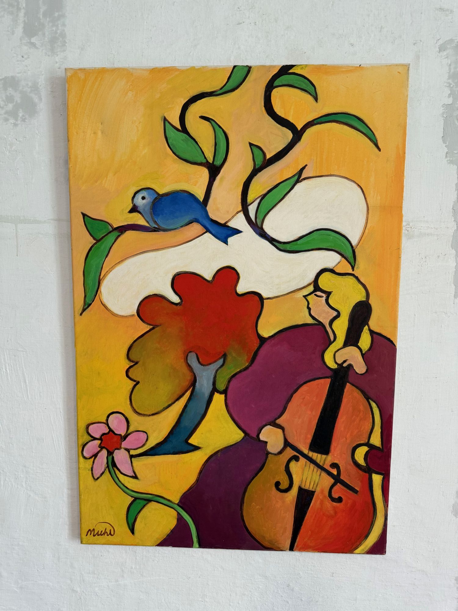 Thomas Muhl (1934-2020): Girl plays violin to a bird