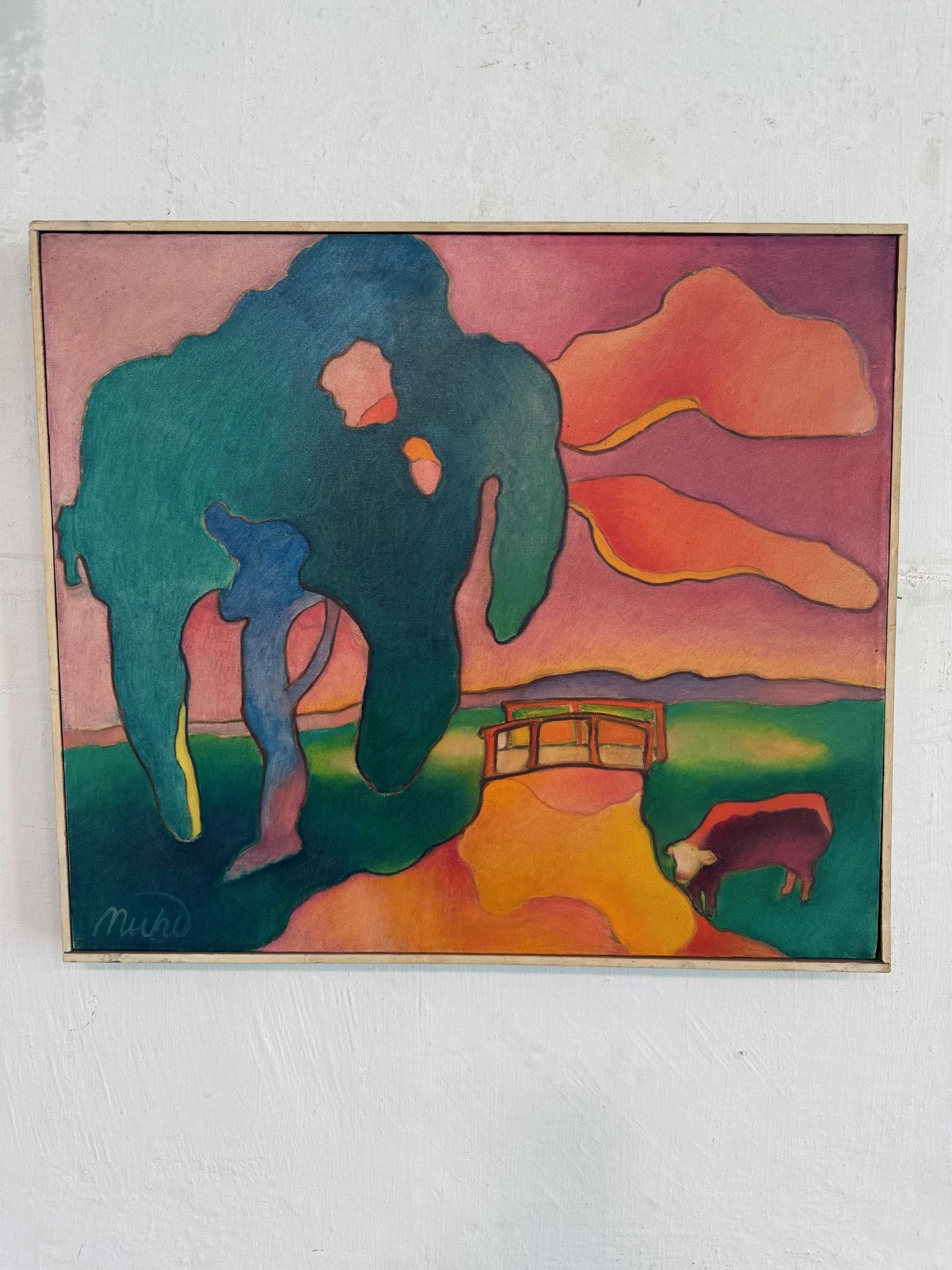 Thomas Muhl (1934-2020): Landscape with cow and bridge