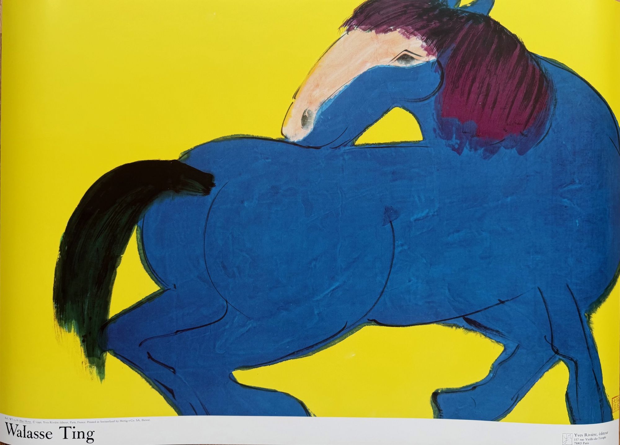 Walasse Ting, Blue Horse, copyright 1990, Yves Riviere .....Printed in Switzerland