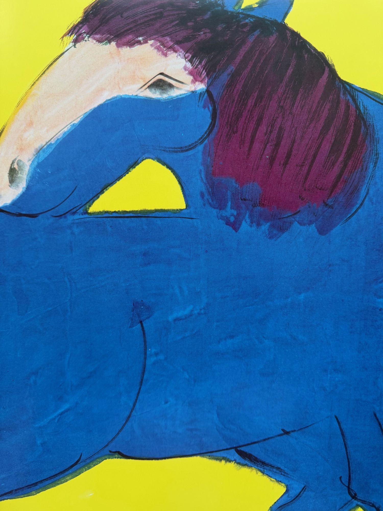 Blue Horse by Walasse Ting, copyright 1990, Yves Riviere, printed in Switzerland. Ting, a Chinese-American visual artist and poet, is celebrated for his vibrant, colorful works, often featuring nude women, cats, birds, and other animals. The print is in good condition, carefully stored, and well preserved. Secure shipping guaranteed.