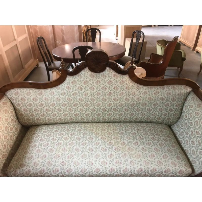 Antique Hand-Carved Solid Walnut Sofa, Early 19th Century