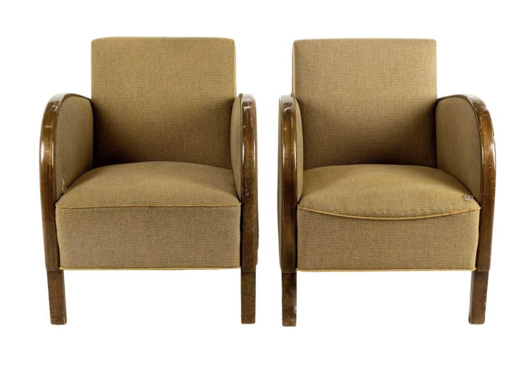 Swedish Art Deco armchairs from the Art Deco period with golden birch bentwood arms in a deep honey color French polish finish. They are structurally sound.