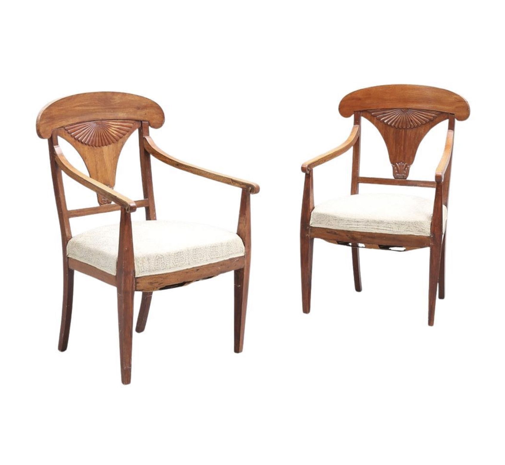 Biedermeier Carver Chairs Swedish Late 1800s Antique Fan Golden Birch 1800s