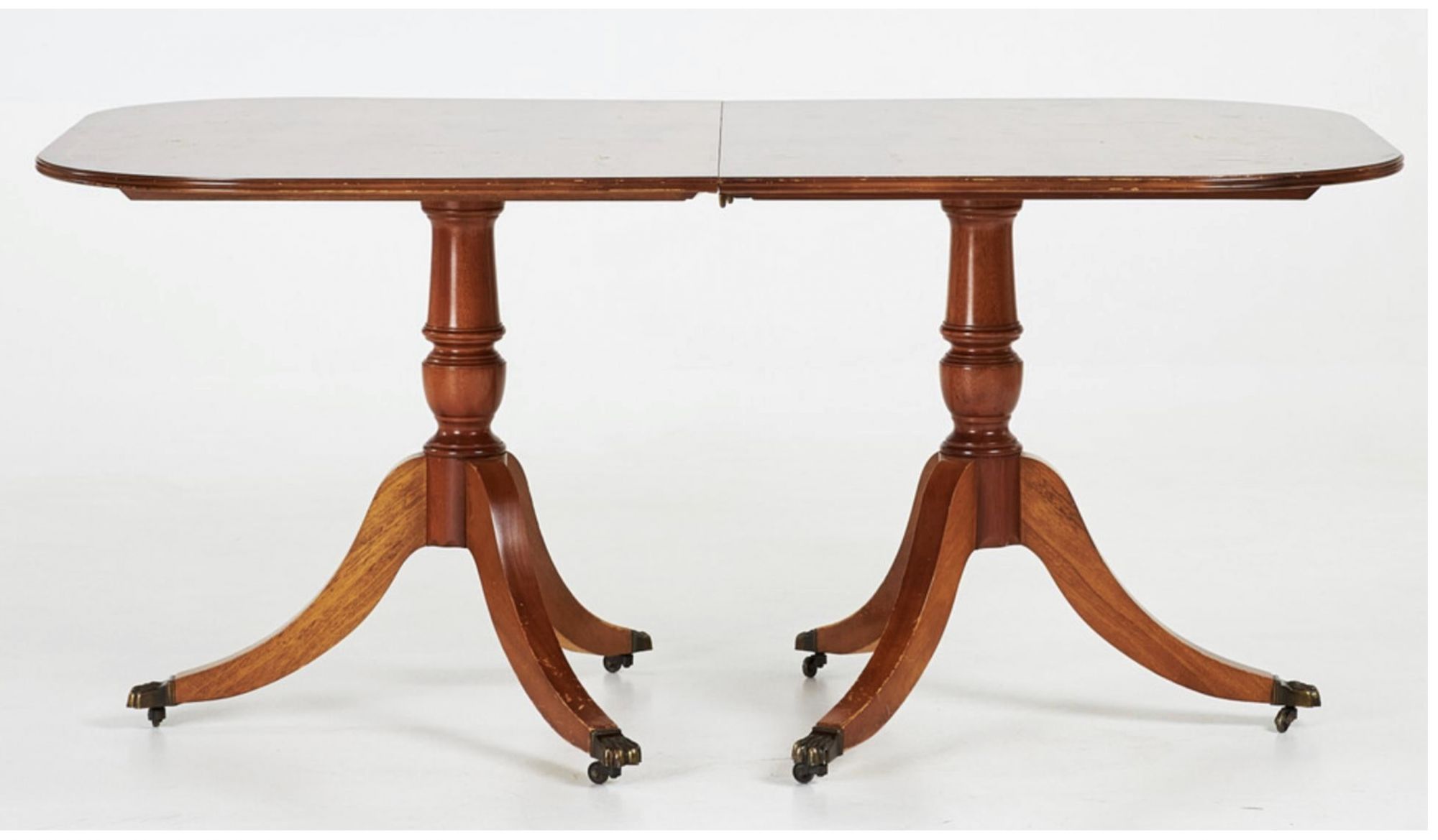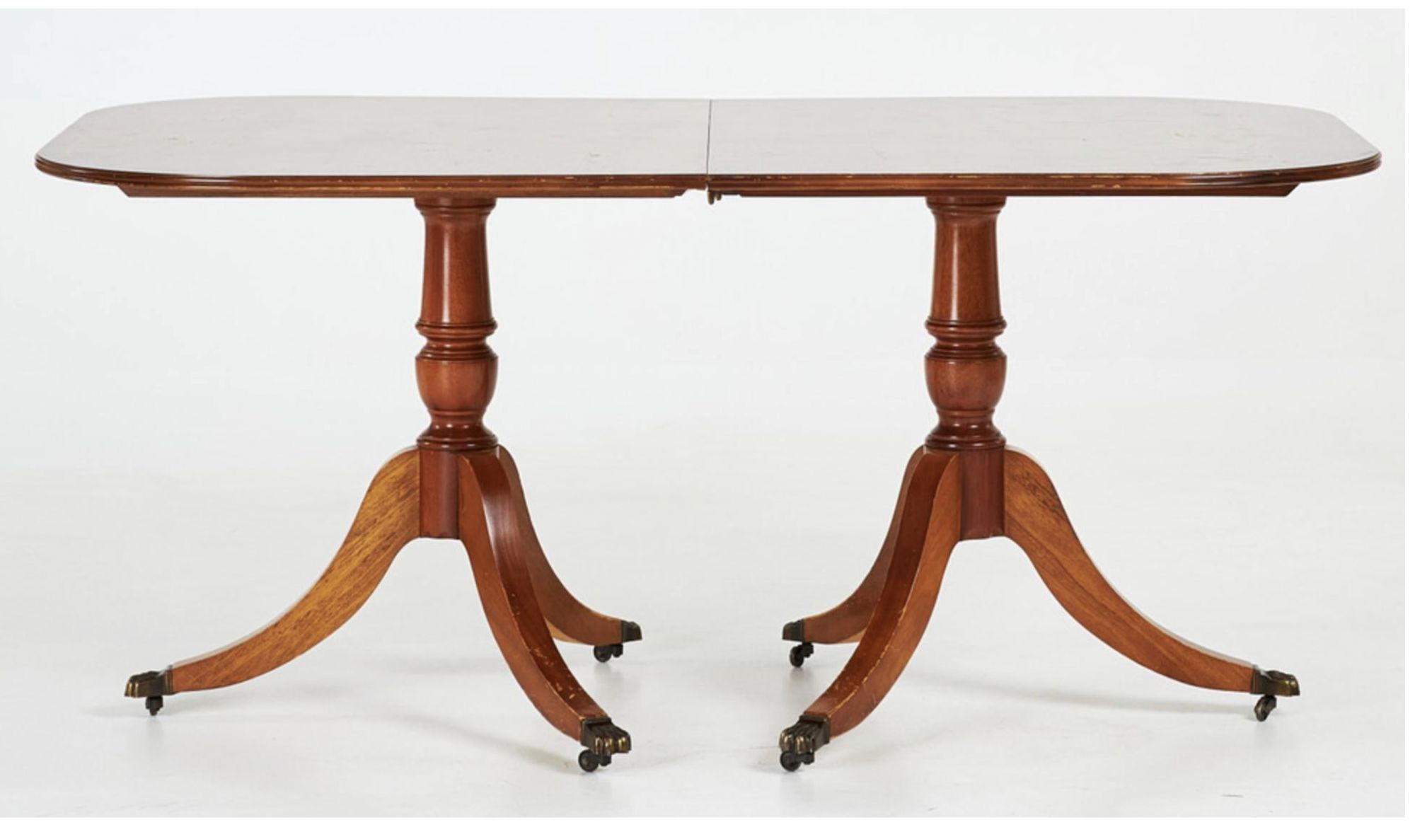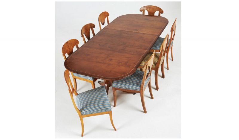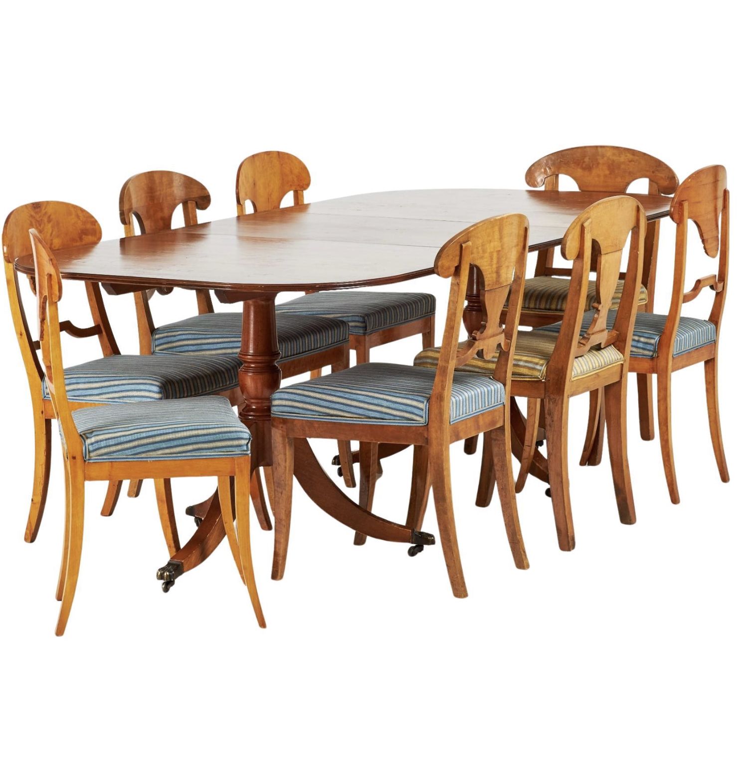 It is shown with a set of late 1800s Biedermeier dining chairs that are available for purchase separately and are not sold as part of the table.