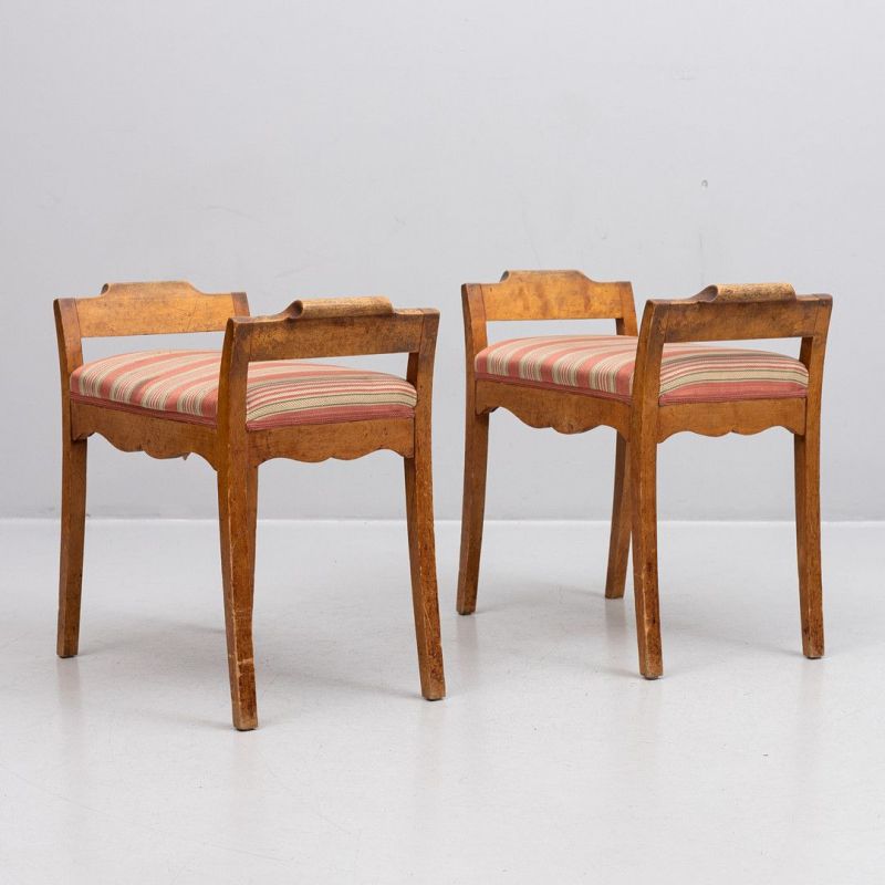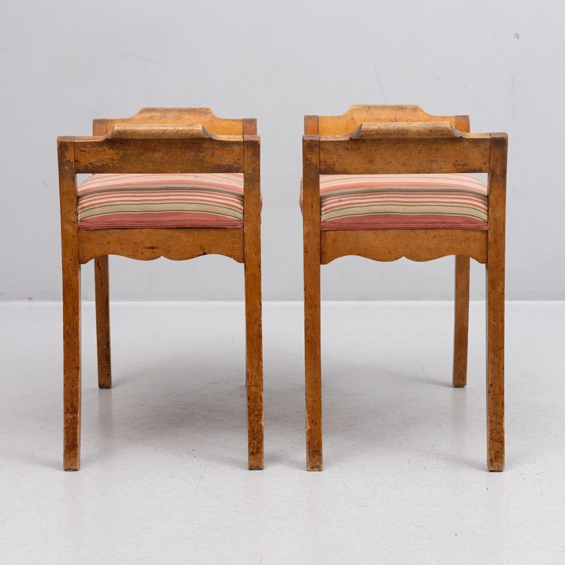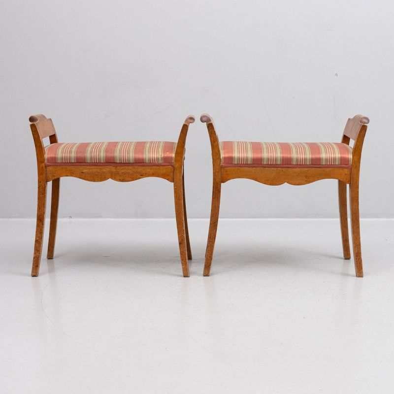 Biedermeier Swedish Foot stool Banquet Pair 1800s Golden Birch