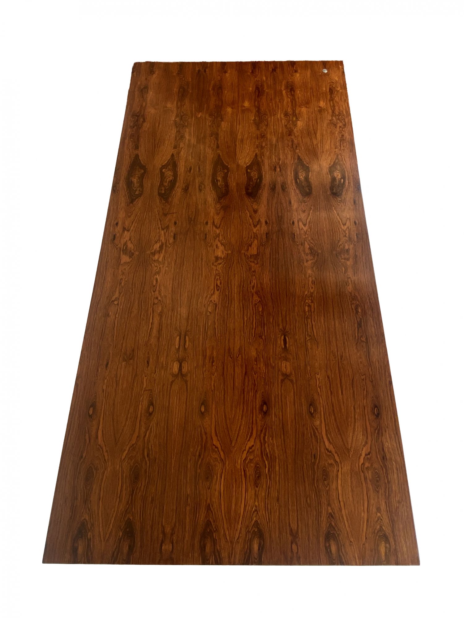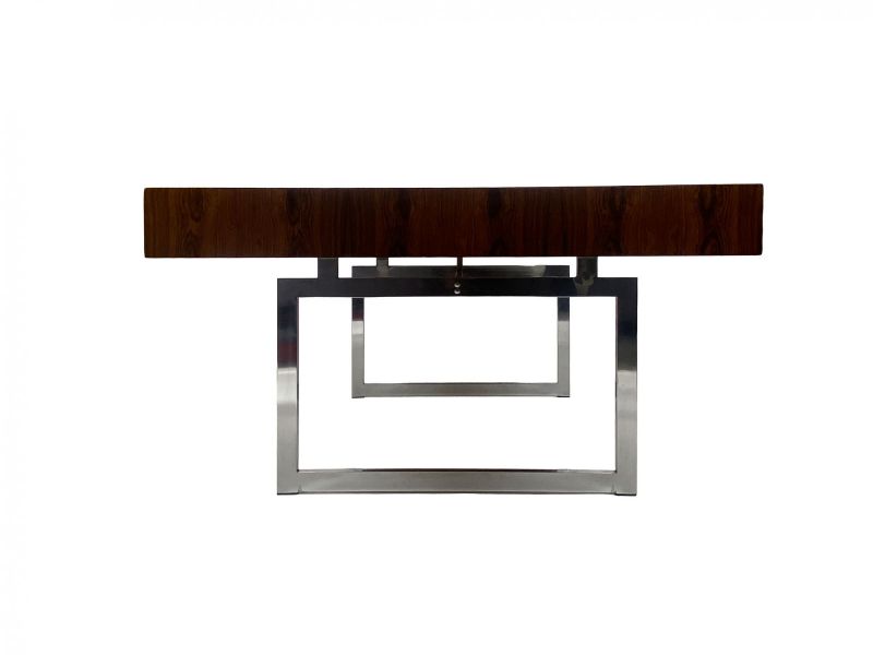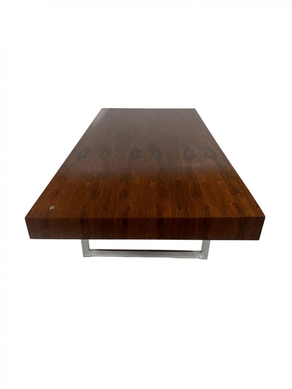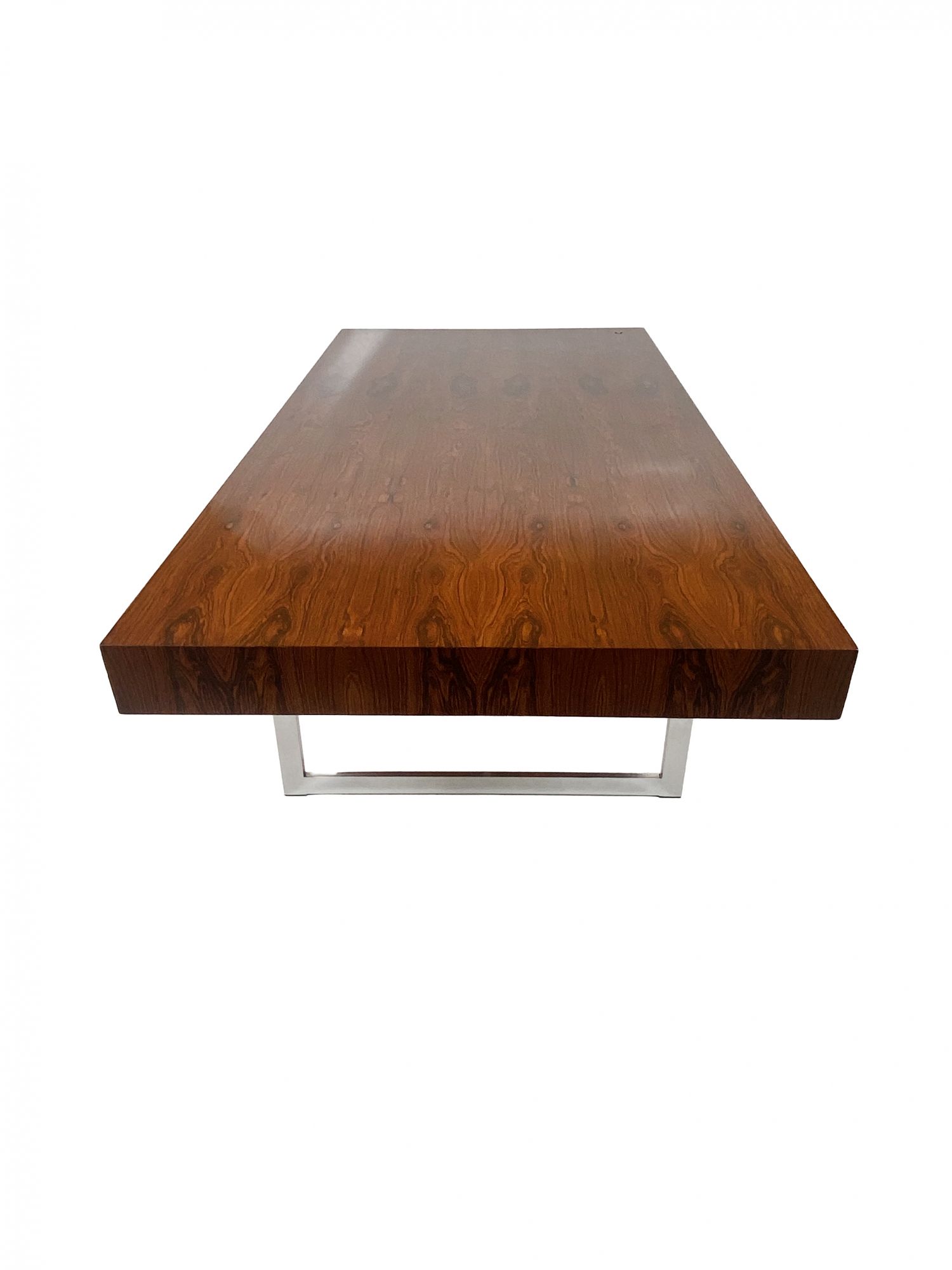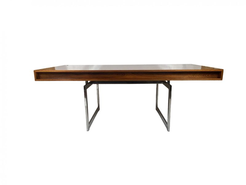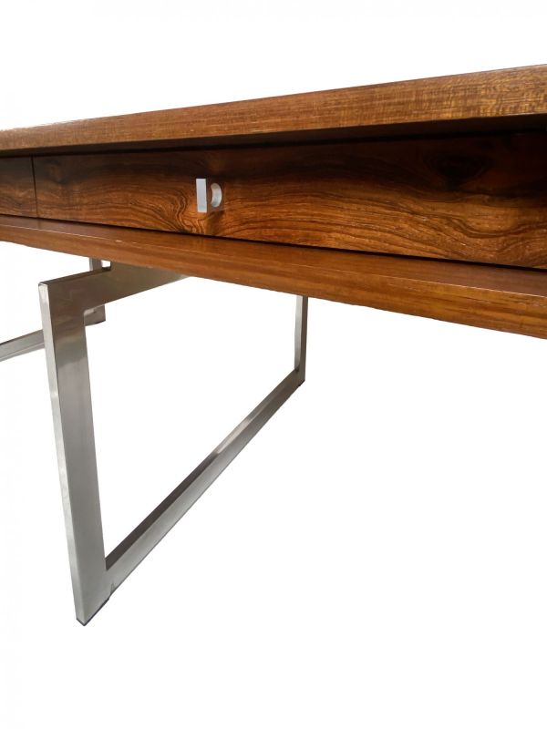 Bodil Kjaer large freestanding rosewood executive desk, model 901 with chrome-plated metal frame, cassette top with four recessed drawers. Produced by E. Petersen & Søn, Denmark. Manufacturer’s label to the underside. Key included.