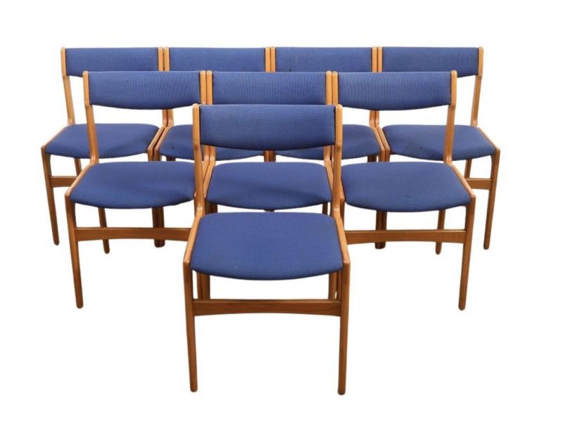 Erik Buch 1960s Dining Chairs Set of 8 1960s mid century modern Blue