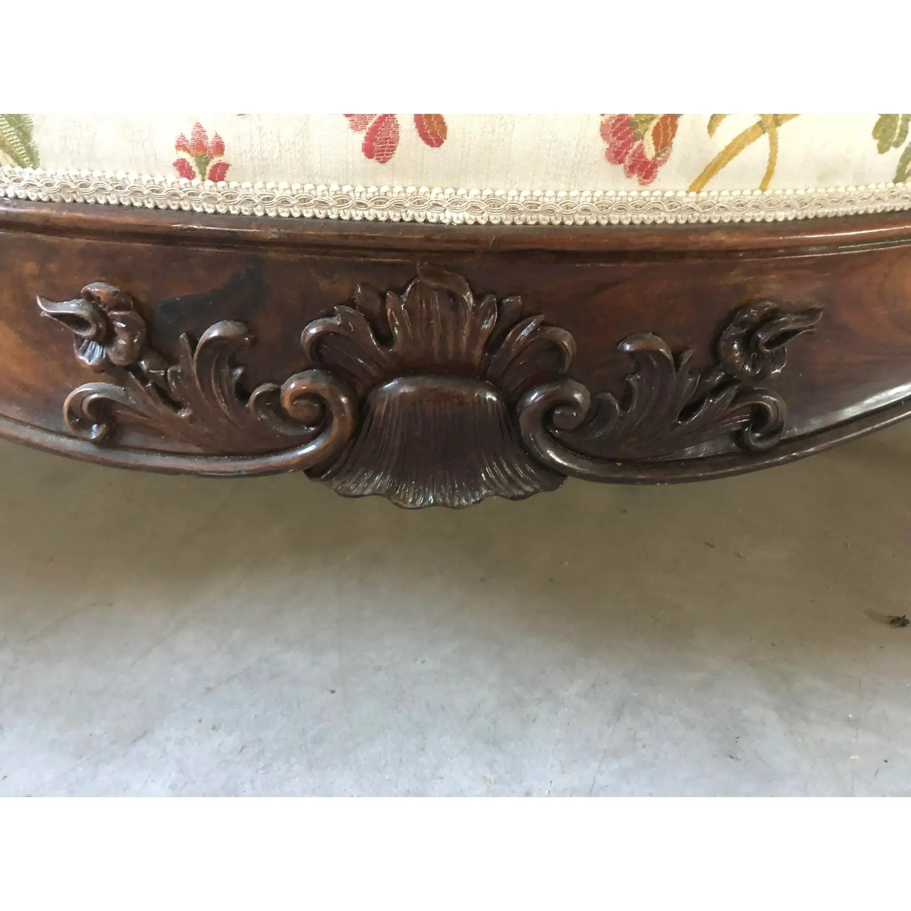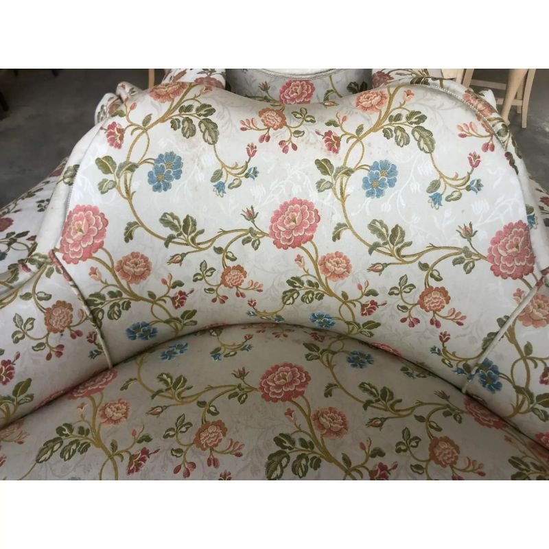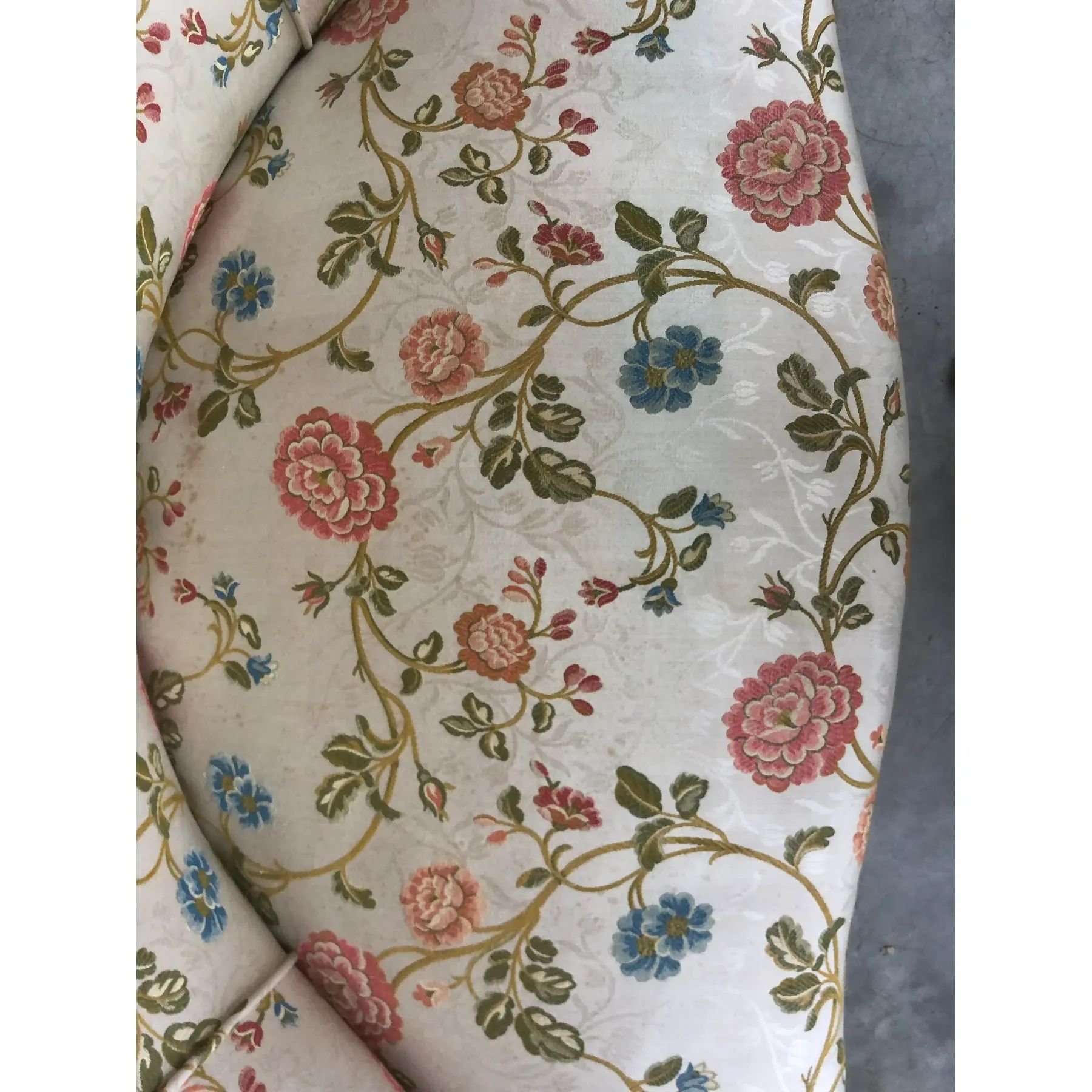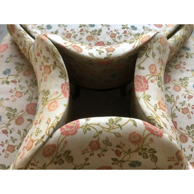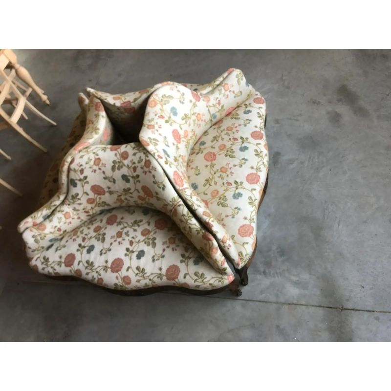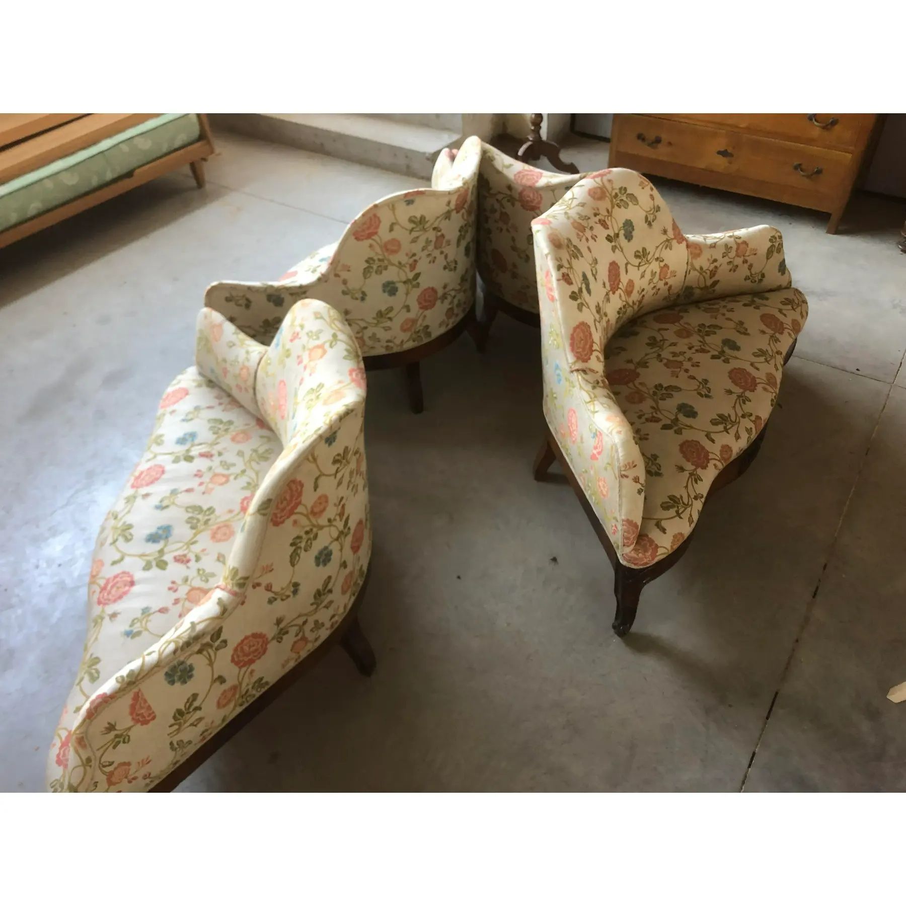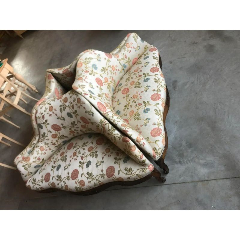 Composition of 4 original sofas 800 in national walnut wood carved by hand and covered in floral fabric colored on beige "Jaquar".