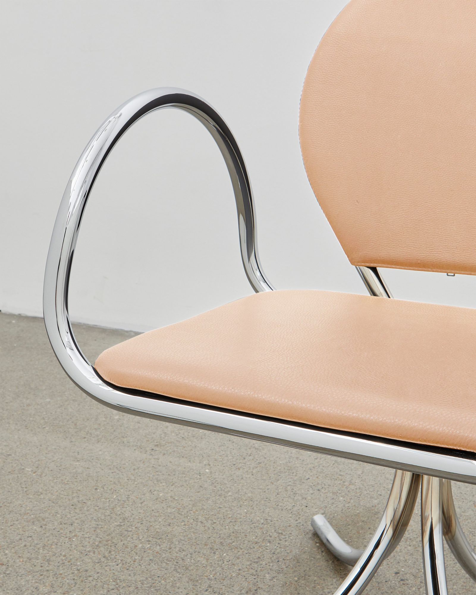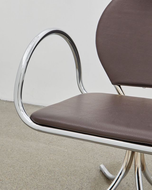 Reminiscent of the roots of a tree, the legs of the PH Arm Chair provide a stability and strength that is refined, unobtrusive and does not distract visually from the body of the chair that it is supporting. The PH Arm Chair appears almost to be floating above the floor, directing the attention to the beautifully finished seat blossoming above it. Designed in 1932. Individually numbered. Available with either chromed steel tubes or a dark copper (gloss) finish and upholstery with the exclusive aniline leather in five colours: mocca, walnut, Indian red, black or un-dyed and Kjellerup Væveri wool fabric in five different colours.