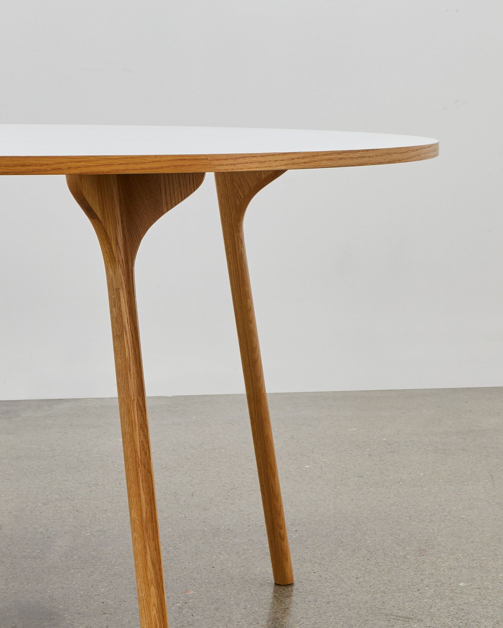 The PH Circle Table comes in three different sizes in addition to the extension system and with a variety of finishes of the table tops: natural oak, black oak or laminated. The solid wood legs are available in natural or black oak. Black oak veneer table plate with veneered edge